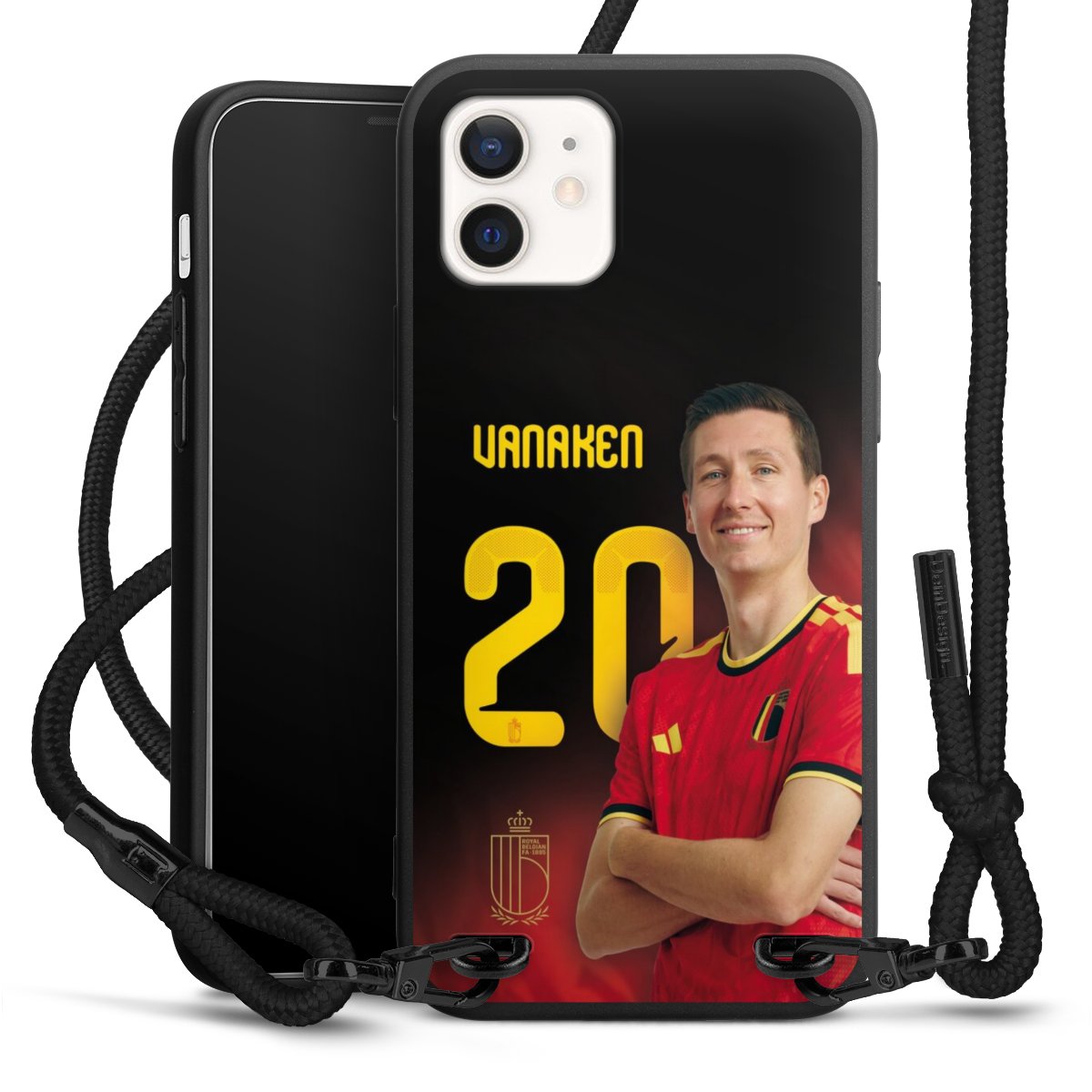 The matt black silicone case is made of flexible TPU (thermoplastic polyurethane) and offers robust protection. The durable, unbreakable material makes the cover flexible and dimensionally stable at the same time. The matte surface makes your design stand out more and is less susceptible to fingerprints and dirt. The stylish trend accessory fits comfortably in the hand and is perfectly complemented by the fabric (polyester) mobile phone strap. The braided fabric strap is approx. 1.70 metres long with a diameter of approx. 0.5 cm. Due to the special knotting technique, the length of the strap can be adjusted by simply pulling it, so that you can adapt it individually to your wishes. The practical case to wear around your neck is available with the fabric strap in black. As a little icing on the cake, we have provided the strap with a chic metal fastener in matt black. The strap is securely fastened to the case with loops made of high-quality genuine leather and press studs. The ends of the fabric strap are covered with metallic end caps and thus protected from fraying.