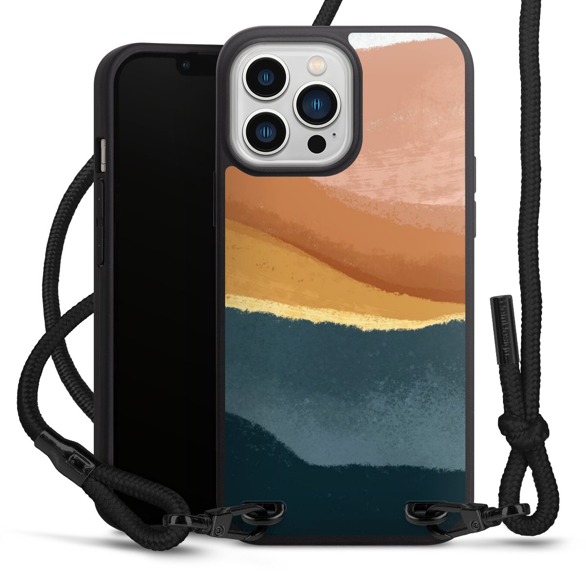 We use the solid direct print process for this phone case, which is why the print area only covers the back and the edge remains unprinted. The case to wear around your neck can be ordered unprinted, fully printed, or partially printed. For your design, either choose one of our exclusive shop motifs or get creative and create your own design, for example with photos and overlays. Design your own personal trend accessory and make an individual statement on the streets!