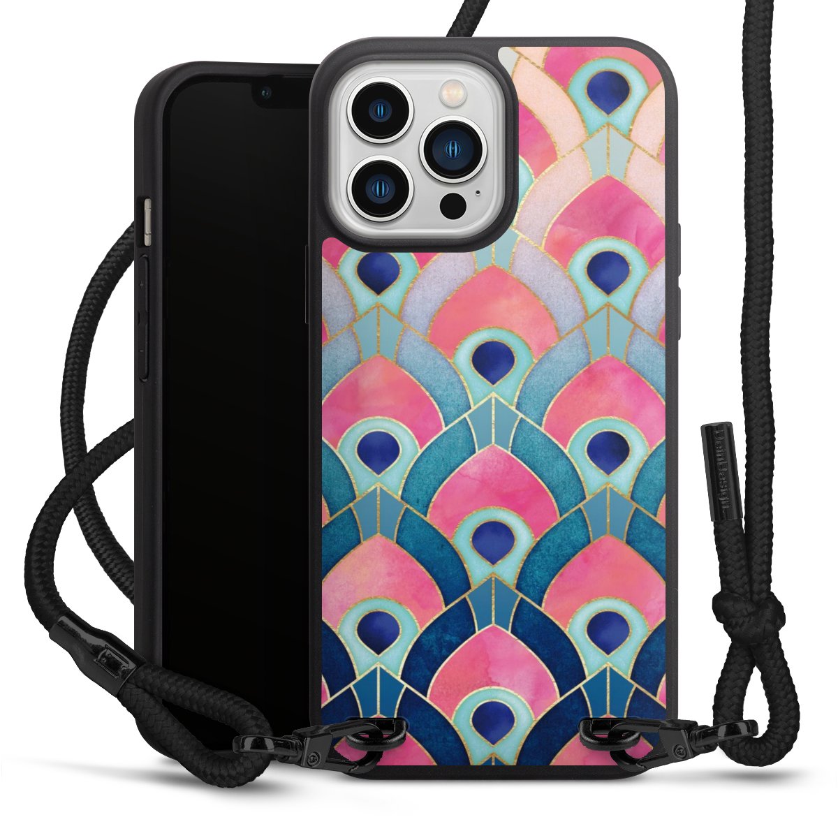 We use the solid direct print process for this phone case, which is why the print area only covers the back and the edge remains unprinted. The case to wear around your neck can be ordered unprinted, fully printed, or partially printed. For your design, either choose one of our exclusive shop motifs or get creative and create your own design, for example with photos and overlays. Design your own personal trend accessory and make an individual statement on the streets!