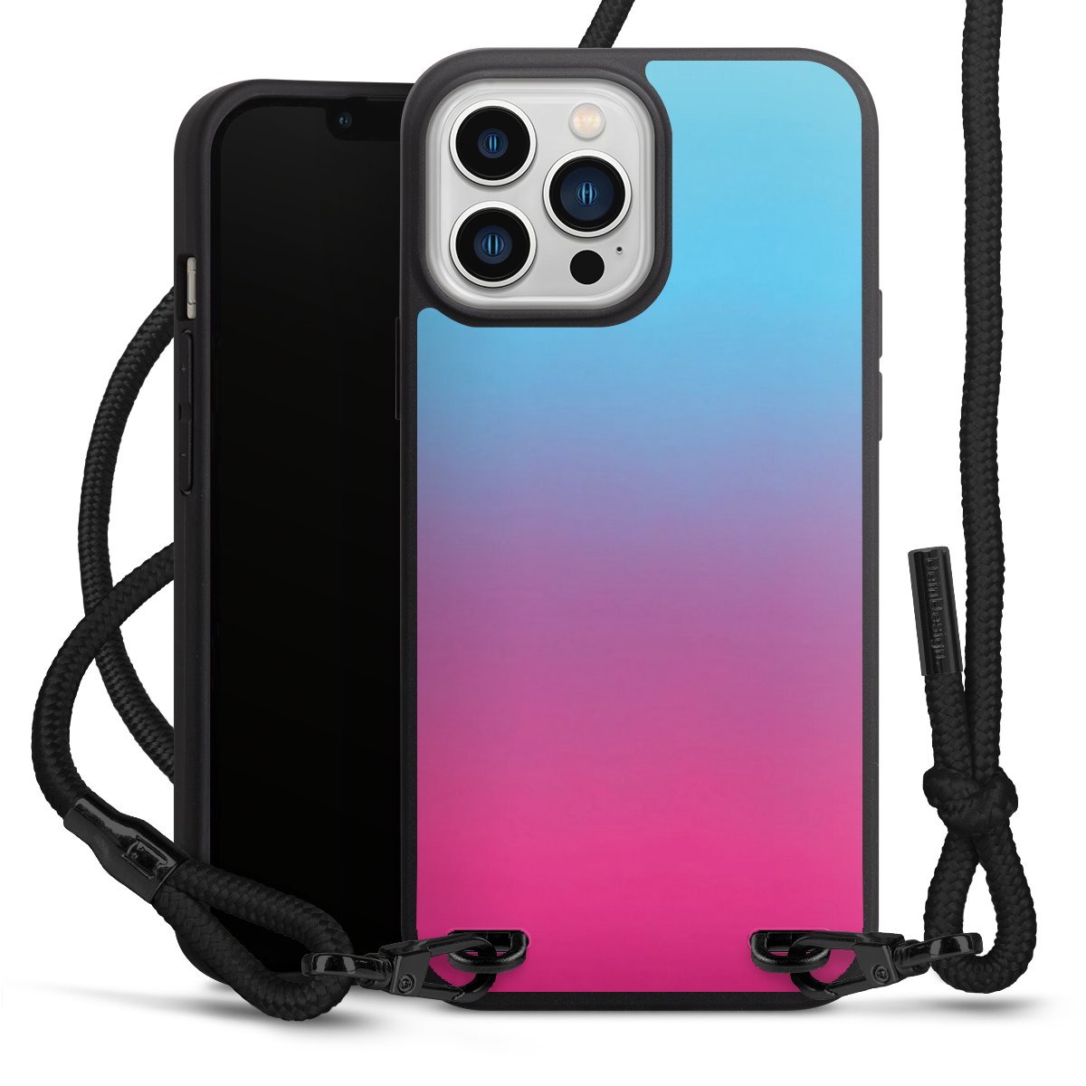We use the solid direct print process for this phone case, which is why the print area only covers the back and the edge remains unprinted. The case to wear around your neck can be ordered unprinted, fully printed, or partially printed. For your design, either choose one of our exclusive shop motifs or get creative and create your own design, for example with photos and overlays. Design your own personal trend accessory and make an individual statement on the streets!