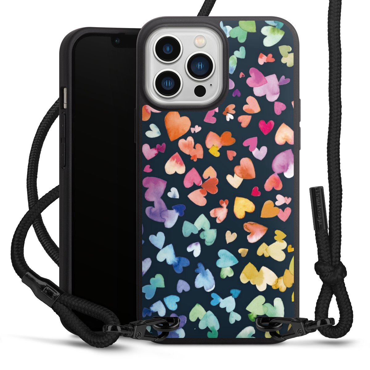 We use the solid direct print process for this phone case, which is why the print area only covers the back and the edge remains unprinted. The case to wear around your neck can be ordered unprinted, fully printed, or partially printed. For your design, either choose one of our exclusive shop motifs or get creative and create your own design, for example with photos and overlays. Design your own personal trend accessory and make an individual statement on the streets!