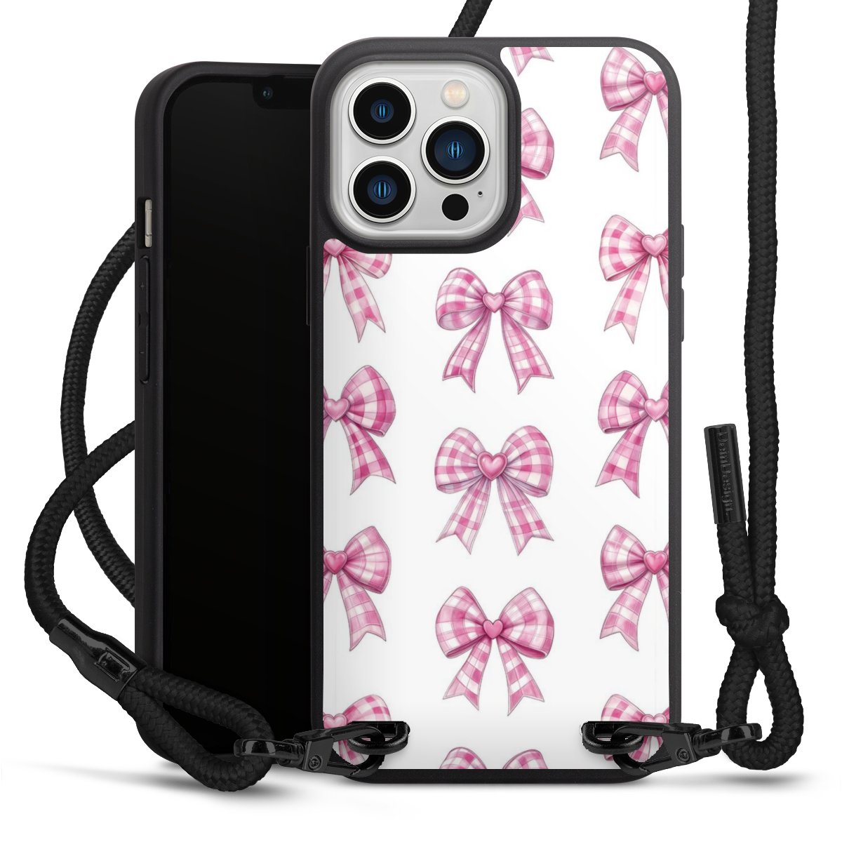 Pure Black: Phone case, fabric strap and metal details in stylish matt black.