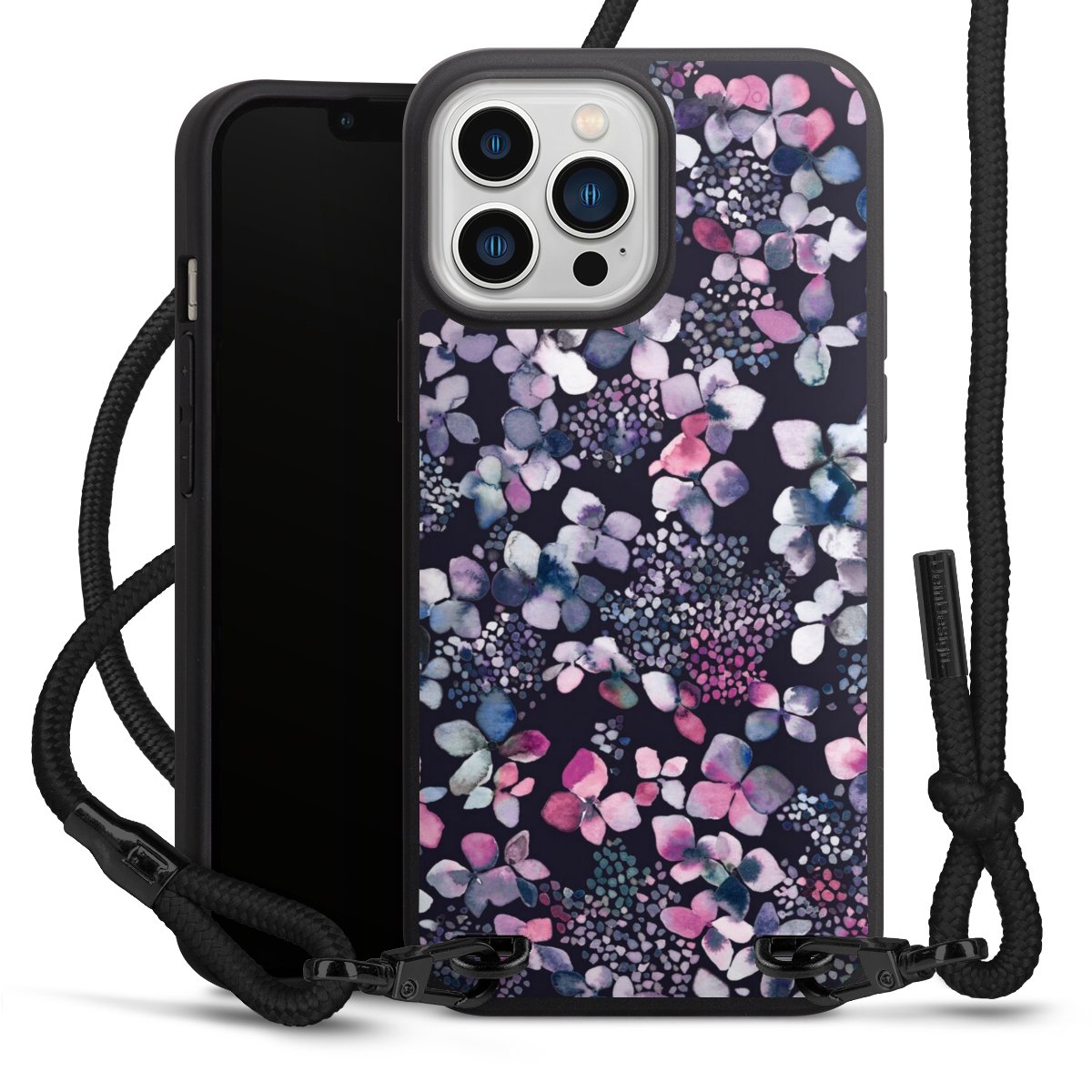 Pure Black: Phone case, fabric strap and metal details in stylish matt black.