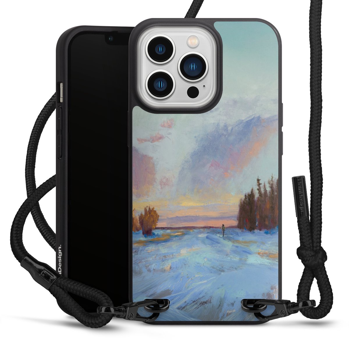 We use the solid direct print process for this phone case, which is why the print area only covers the back and the edge remains unprinted. The case to wear around your neck can be ordered unprinted, fully printed, or partially printed. For your design, either choose one of our exclusive shop motifs or get creative and create your own design, for example with photos and overlays. Design your own personal trend accessory and make an individual statement on the streets!