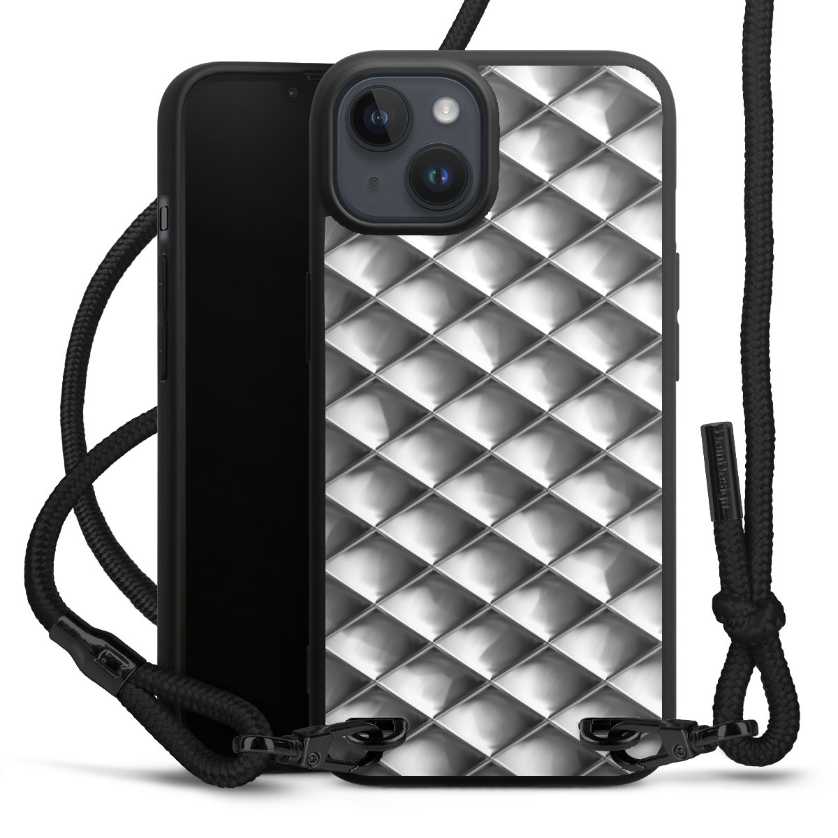 Pure Black: Phone case, fabric strap and metal details in stylish matt black.