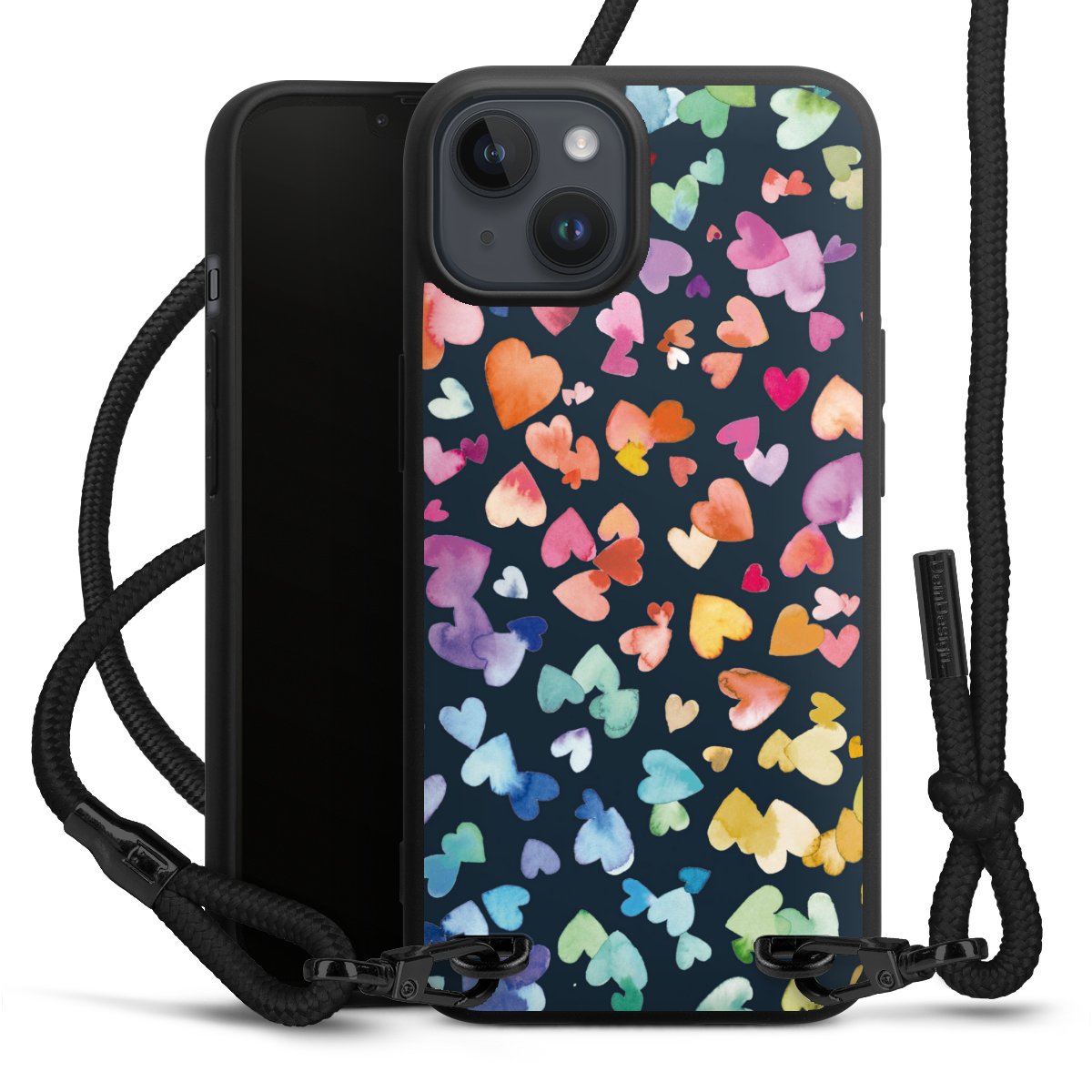 We use the solid direct print process for this phone case, which is why the print area only covers the back and the edge remains unprinted. The case to wear around your neck can be ordered unprinted, fully printed, or partially printed. For your design, either choose one of our exclusive shop motifs or get creative and create your own design, for example with photos and overlays. Design your own personal trend accessory and make an individual statement on the streets!