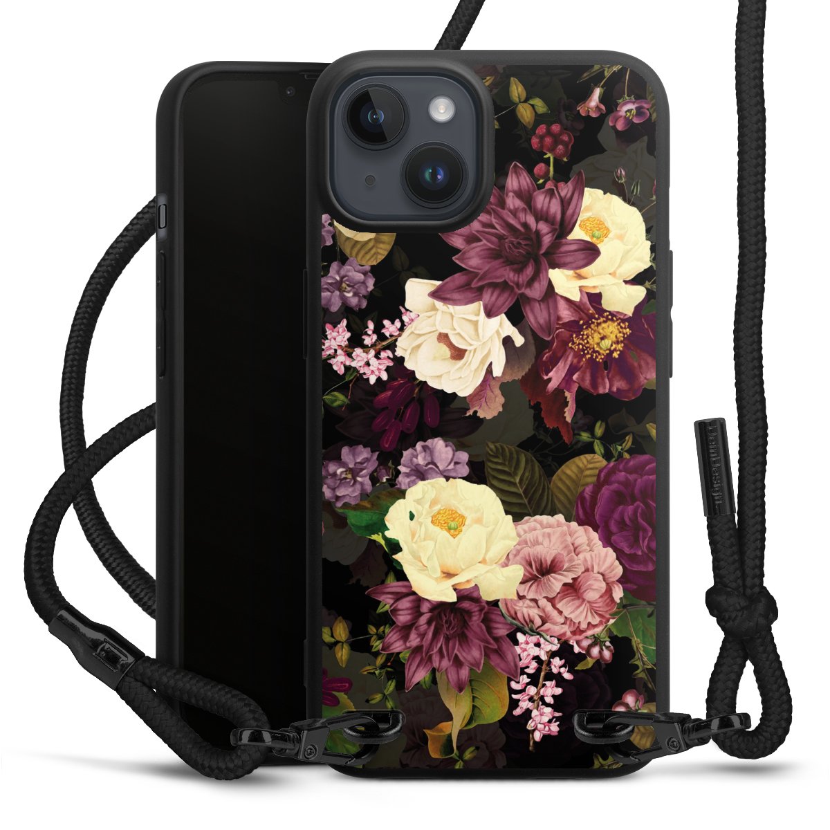 The matt black silicone case is made of flexible TPU (thermoplastic polyurethane) and offers robust protection. The durable, unbreakable material makes the cover flexible and dimensionally stable at the same time. The matte surface makes your design stand out more and is less susceptible to fingerprints and dirt. The stylish trend accessory fits comfortably in the hand and is perfectly complemented by the fabric (polyester) mobile phone strap. The braided fabric strap is approx. 1.70 metres long with a diameter of approx. 0.5 cm. Due to the special knotting technique, the length of the strap can be adjusted by simply pulling it, so that you can adapt it individually to your wishes. The practical case to wear around your neck is available with the fabric strap in black. As a little icing on the cake, we have provided the strap with a chic metal fastener in matt black. The strap is securely fastened to the case with loops made of high-quality genuine leather and press studs. The ends of the fabric strap are covered with metallic end caps and thus protected from fraying.