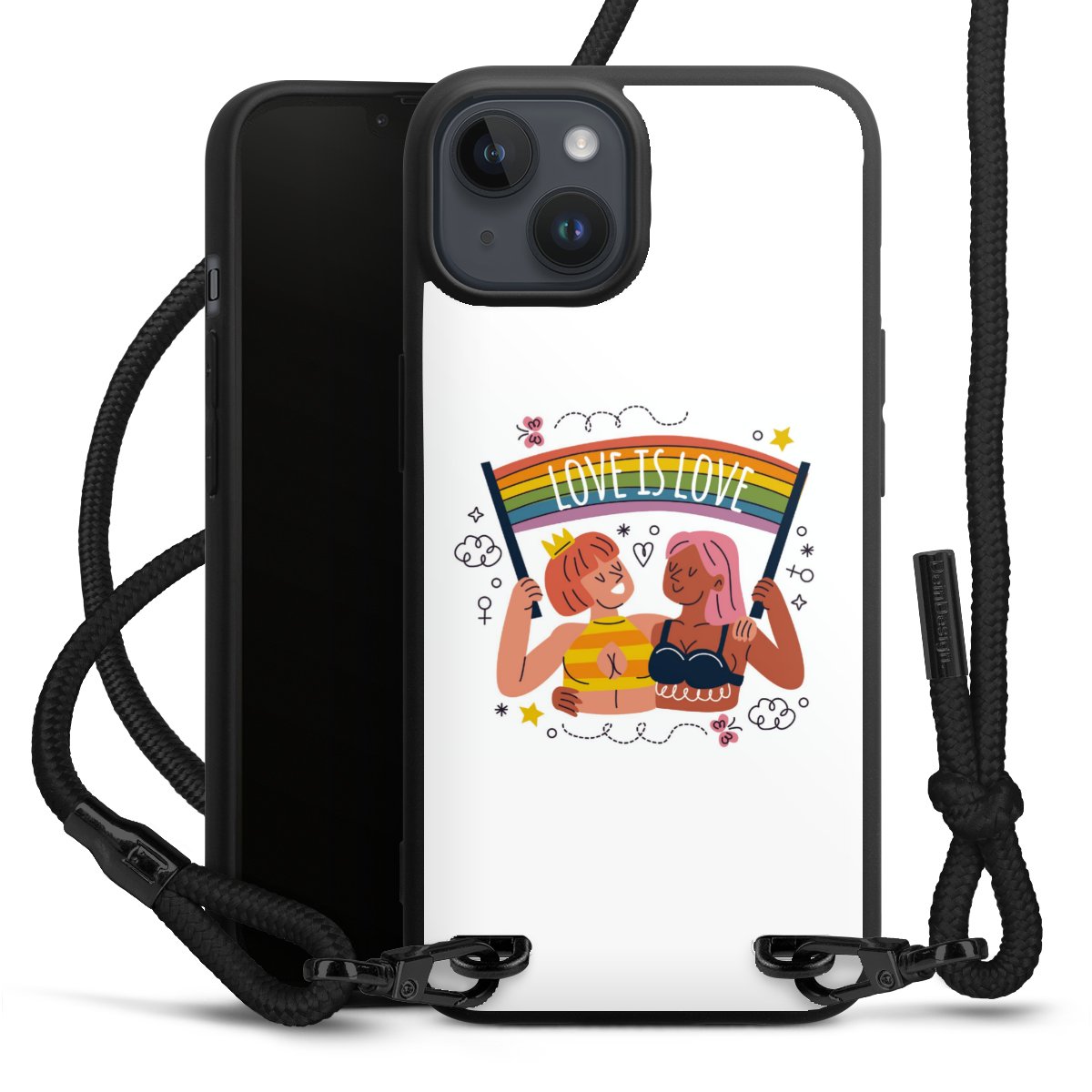 We use the solid direct print process for this phone case, which is why the print area only covers the back and the edge remains unprinted. The case to wear around your neck can be ordered unprinted, fully printed, or partially printed. For your design, either choose one of our exclusive shop motifs or get creative and create your own design, for example with photos and overlays. Design your own personal trend accessory and make an individual statement on the streets!