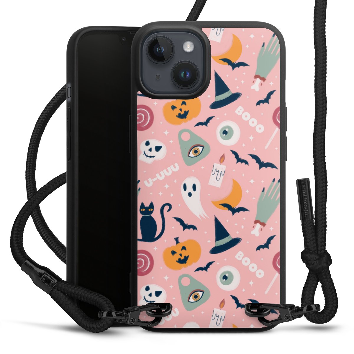 Pure Black: Phone case, fabric strap and metal details in stylish matt black.