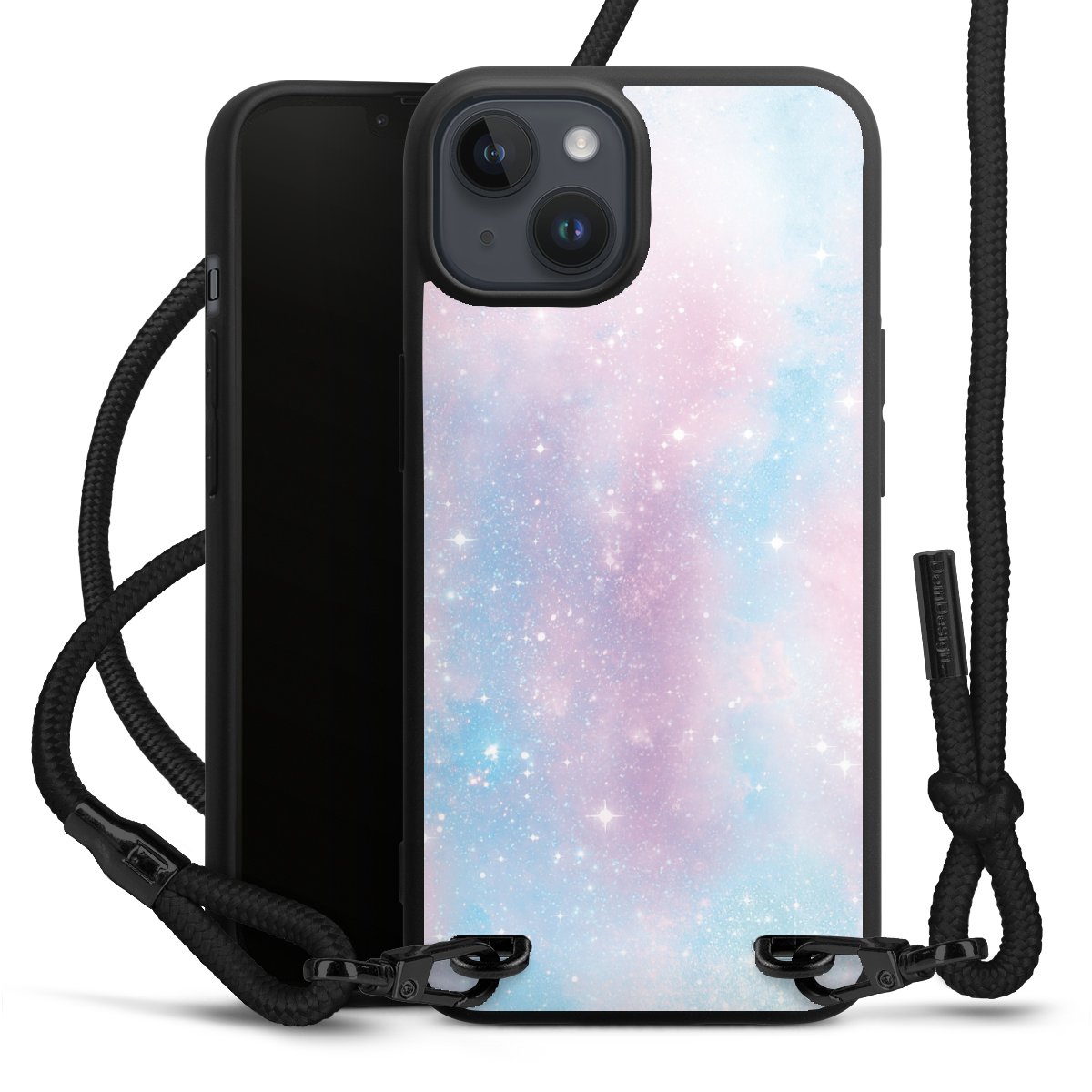 We use the solid direct print process for this phone case, which is why the print area only covers the back and the edge remains unprinted. The case to wear around your neck can be ordered unprinted, fully printed, or partially printed. For your design, either choose one of our exclusive shop motifs or get creative and create your own design, for example with photos and overlays. Design your own personal trend accessory and make an individual statement on the streets!