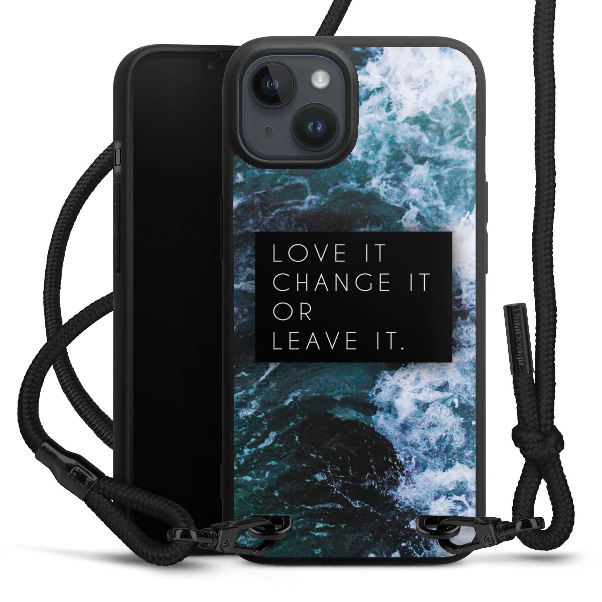 We use the solid direct print process for this phone case, which is why the print area only covers the back and the edge remains unprinted. The case to wear around your neck can be ordered unprinted, fully printed, or partially printed. For your design, either choose one of our exclusive shop motifs or get creative and create your own design, for example with photos and overlays. Design your own personal trend accessory and make an individual statement on the streets!