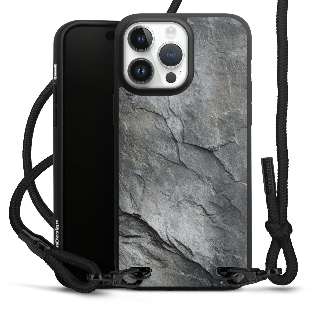 Pure Black: Phone case, fabric strap and metal details in stylish matt black.