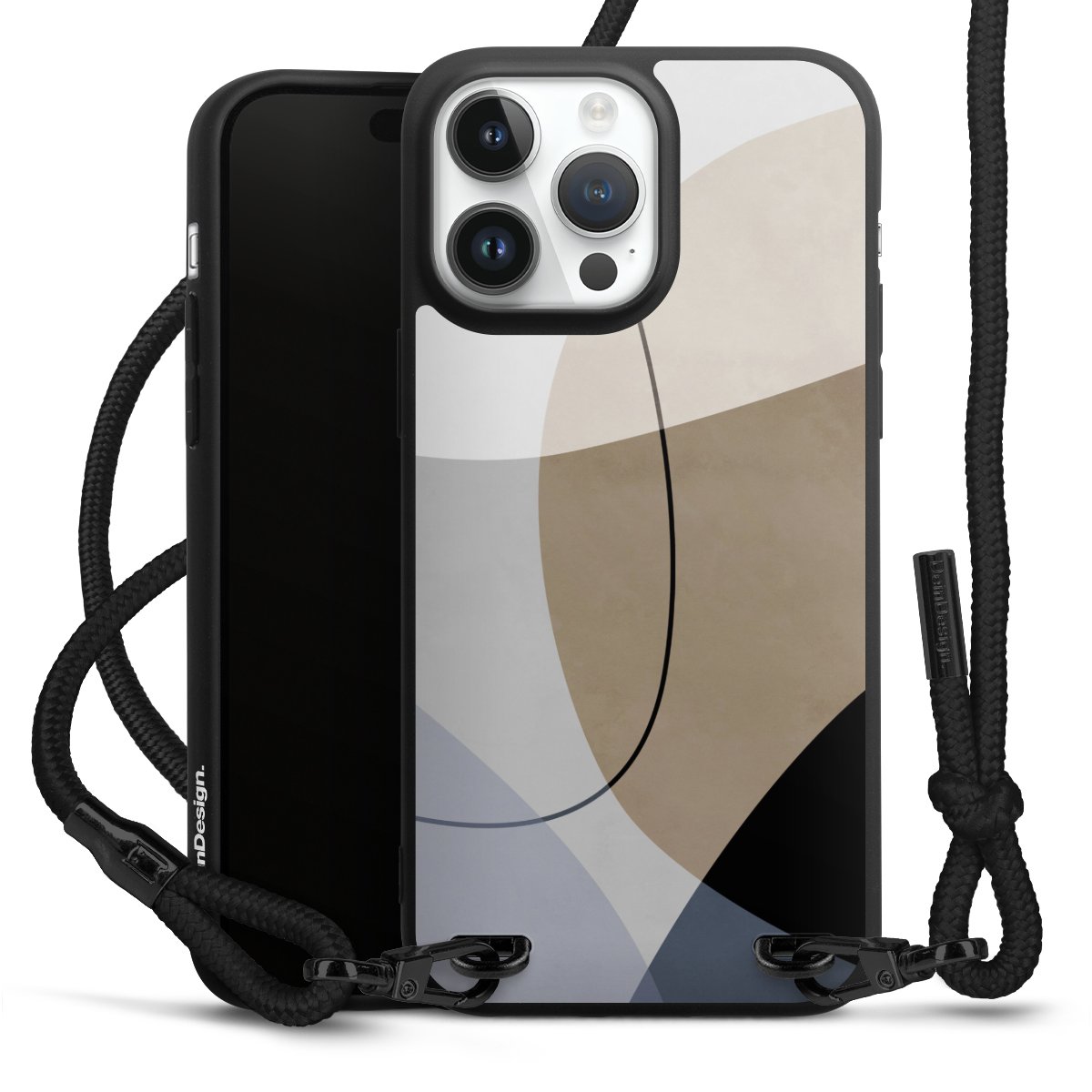 Pure Black: Phone case, fabric strap and metal details in stylish matt black.