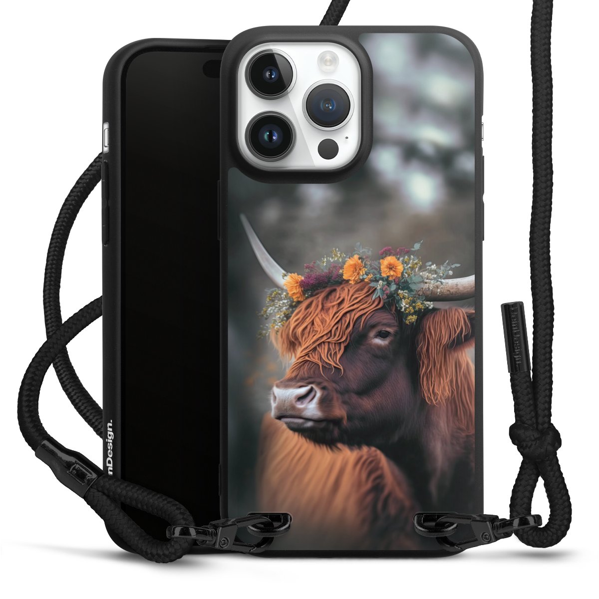 The matt black silicone case is made of flexible TPU (thermoplastic polyurethane) and offers robust protection. The durable, unbreakable material makes the cover flexible and dimensionally stable at the same time. The matte surface makes your design stand out more and is less susceptible to fingerprints and dirt. The stylish trend accessory fits comfortably in the hand and is perfectly complemented by the fabric (polyester) mobile phone strap. The braided fabric strap is approx. 1.70 metres long with a diameter of approx. 0.5 cm. Due to the special knotting technique, the length of the strap can be adjusted by simply pulling it, so that you can adapt it individually to your wishes. The practical case to wear around your neck is available with the fabric strap in black. As a little icing on the cake, we have provided the strap with a chic metal fastener in matt black. The strap is securely fastened to the case with loops made of high-quality genuine leather and press studs. The ends of the fabric strap are covered with metallic end caps and thus protected from fraying.