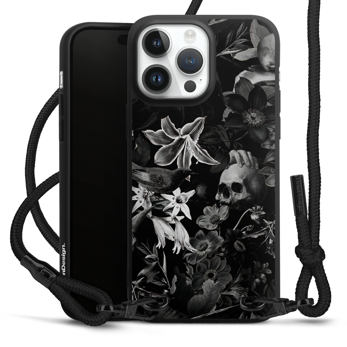 Pure Black: Phone case, fabric strap and metal details in stylish matt black.