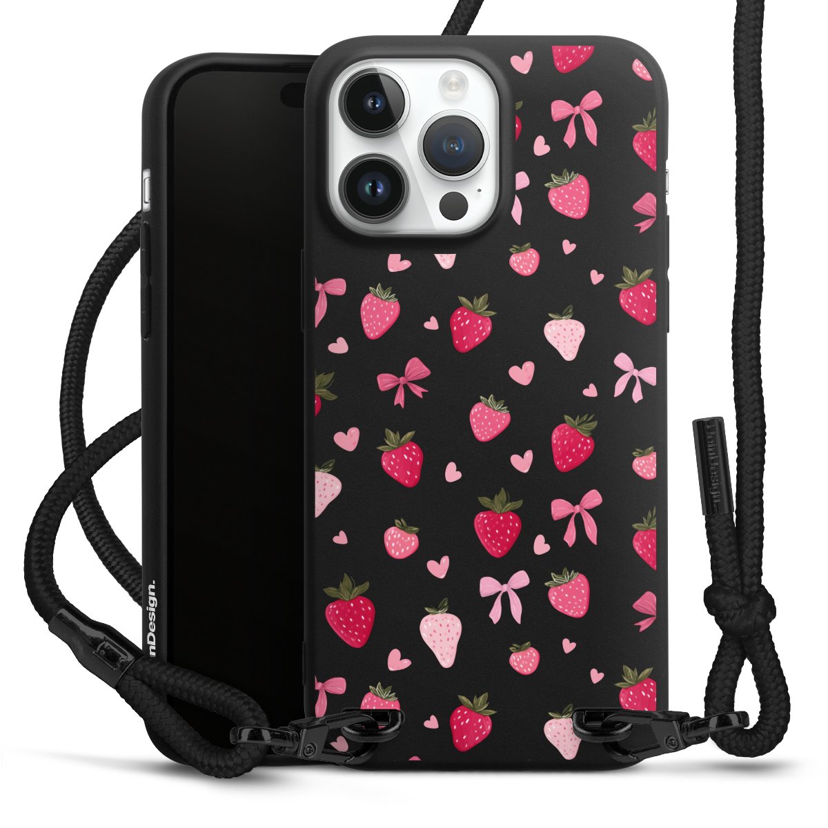 Pure Black: Phone case, fabric strap and metal details in stylish matt black.
