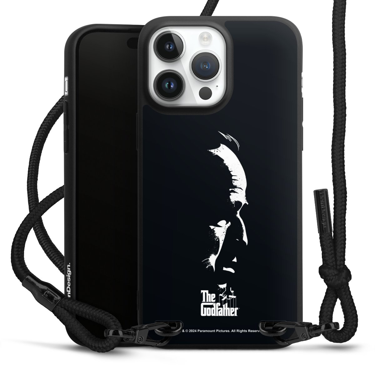 Pure Black: Phone case, fabric strap and metal details in stylish matt black.