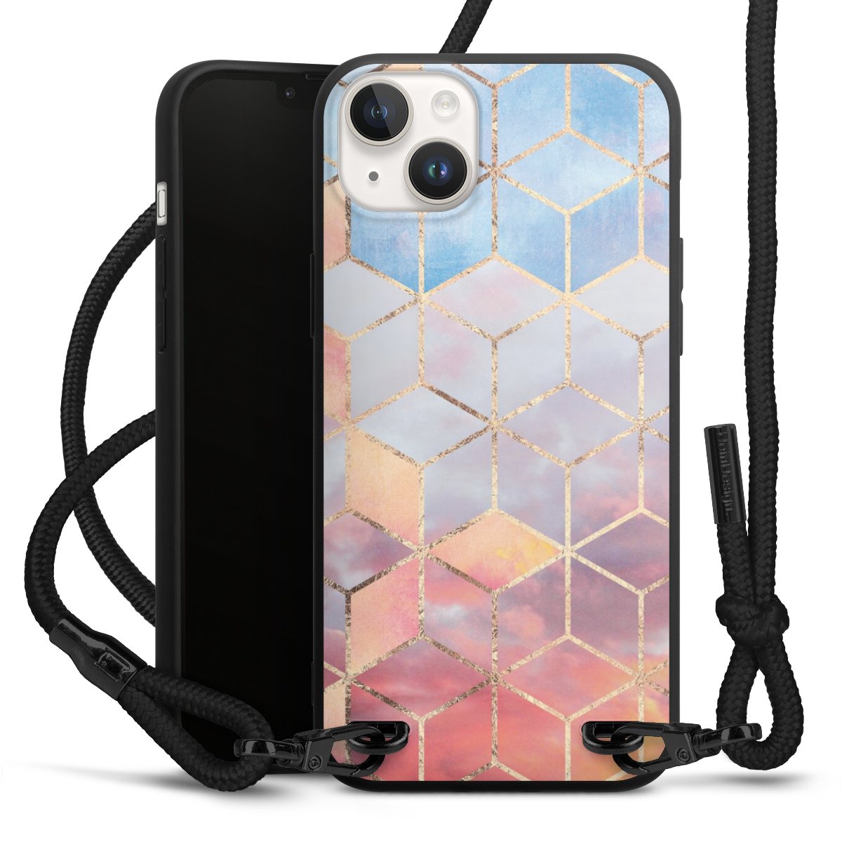 We use the solid direct print process for this phone case, which is why the print area only covers the back and the edge remains unprinted. The case to wear around your neck can be ordered unprinted, fully printed, or partially printed. For your design, either choose one of our exclusive shop motifs or get creative and create your own design, for example with photos and overlays. Design your own personal trend accessory and make an individual statement on the streets!
