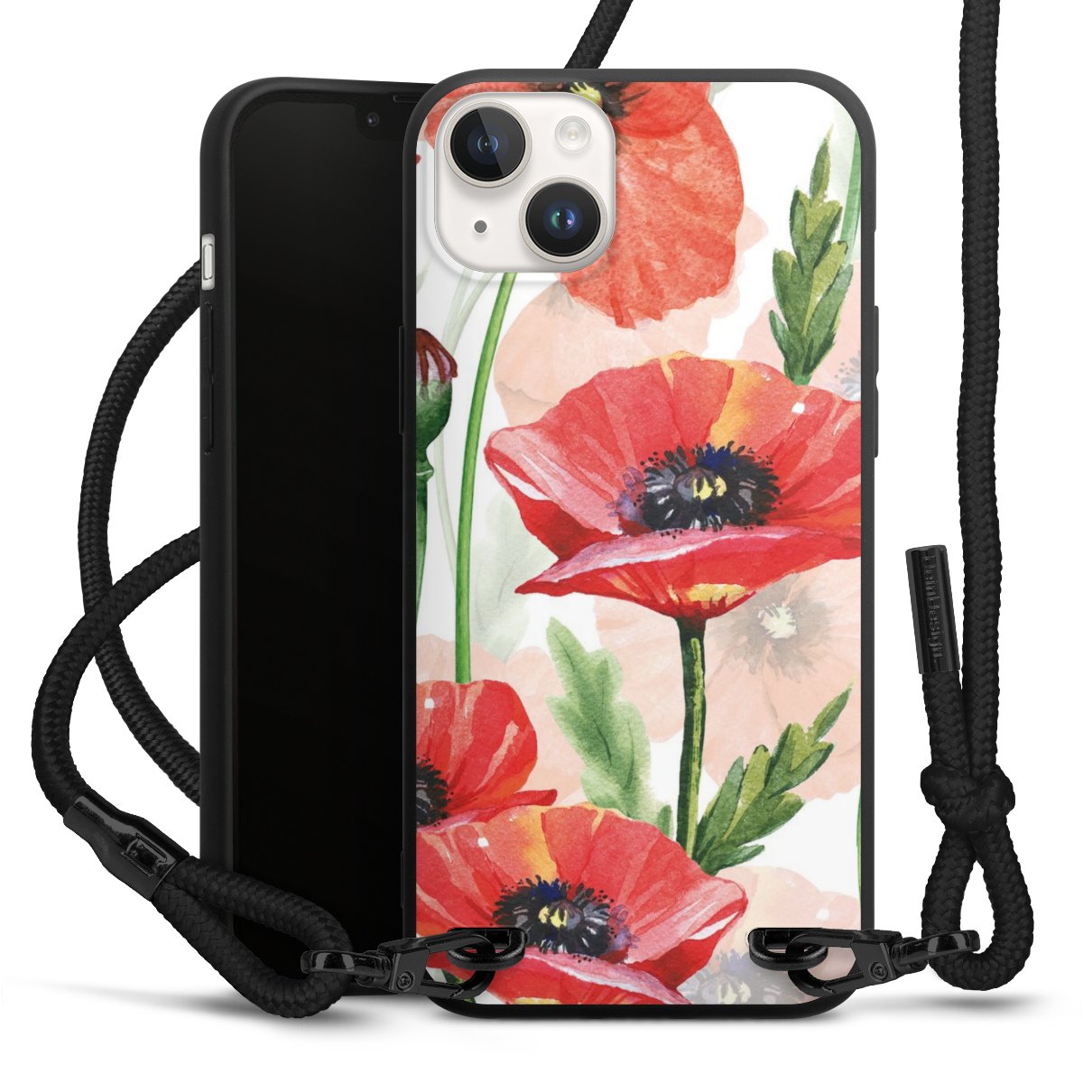 The matt black silicone case is made of flexible TPU (thermoplastic polyurethane) and offers robust protection. The durable, unbreakable material makes the cover flexible and dimensionally stable at the same time. The matte surface makes your design stand out more and is less susceptible to fingerprints and dirt. The stylish trend accessory fits comfortably in the hand and is perfectly complemented by the fabric (polyester) mobile phone strap. The braided fabric strap is approx. 1.70 metres long with a diameter of approx. 0.5 cm. Due to the special knotting technique, the length of the strap can be adjusted by simply pulling it, so that you can adapt it individually to your wishes. The practical case to wear around your neck is available with the fabric strap in black. As a little icing on the cake, we have provided the strap with a chic metal fastener in matt black. The strap is securely fastened to the case with loops made of high-quality genuine leather and press studs. The ends of the fabric strap are covered with metallic end caps and thus protected from fraying.