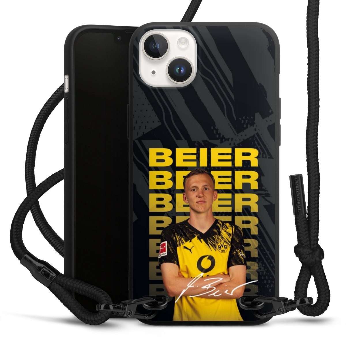 We use the solid direct print process for this phone case, which is why the print area only covers the back and the edge remains unprinted. The case to wear around your neck can be ordered unprinted, fully printed, or partially printed. For your design, either choose one of our exclusive shop motifs or get creative and create your own design, for example with photos and overlays. Design your own personal trend accessory and make an individual statement on the streets!