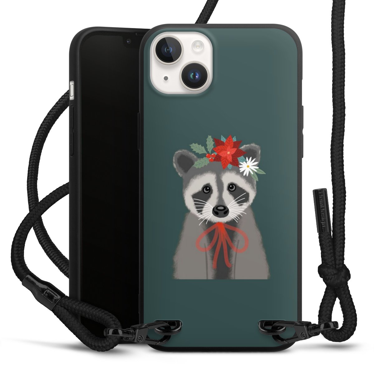 The matt black silicone case is made of flexible TPU (thermoplastic polyurethane) and offers robust protection. The durable, unbreakable material makes the cover flexible and dimensionally stable at the same time. The matte surface makes your design stand out more and is less susceptible to fingerprints and dirt. The stylish trend accessory fits comfortably in the hand and is perfectly complemented by the fabric (polyester) mobile phone strap. The braided fabric strap is approx. 1.70 metres long with a diameter of approx. 0.5 cm. Due to the special knotting technique, the length of the strap can be adjusted by simply pulling it, so that you can adapt it individually to your wishes. The practical case to wear around your neck is available with the fabric strap in black. As a little icing on the cake, we have provided the strap with a chic metal fastener in matt black. The strap is securely fastened to the case with loops made of high-quality genuine leather and press studs. The ends of the fabric strap are covered with metallic end caps and thus protected from fraying.