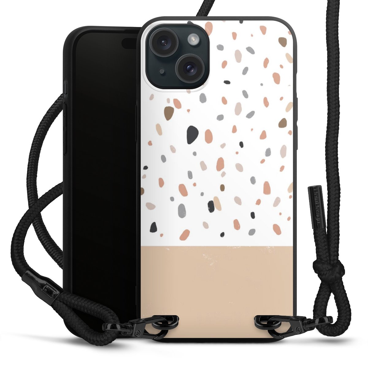 We use the solid direct print process for this phone case, which is why the print area only covers the back and the edge remains unprinted. The case to wear around your neck can be ordered unprinted, fully printed, or partially printed. For your design, either choose one of our exclusive shop motifs or get creative and create your own design, for example with photos and overlays. Design your own personal trend accessory and make an individual statement on the streets!