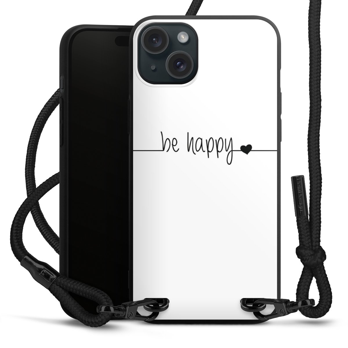The matt black silicone case is made of flexible TPU (thermoplastic polyurethane) and offers robust protection. The durable, unbreakable material makes the cover flexible and dimensionally stable at the same time. The matte surface makes your design stand out more and is less susceptible to fingerprints and dirt. The stylish trend accessory fits comfortably in the hand and is perfectly complemented by the fabric (polyester) mobile phone strap. The braided fabric strap is approx. 1.70 metres long with a diameter of approx. 0.5 cm. Due to the special knotting technique, the length of the strap can be adjusted by simply pulling it, so that you can adapt it individually to your wishes. The practical case to wear around your neck is available with the fabric strap in black. As a little icing on the cake, we have provided the strap with a chic metal fastener in matt black. The strap is securely fastened to the case with loops made of high-quality genuine leather and press studs. The ends of the fabric strap are covered with metallic end caps and thus protected from fraying.