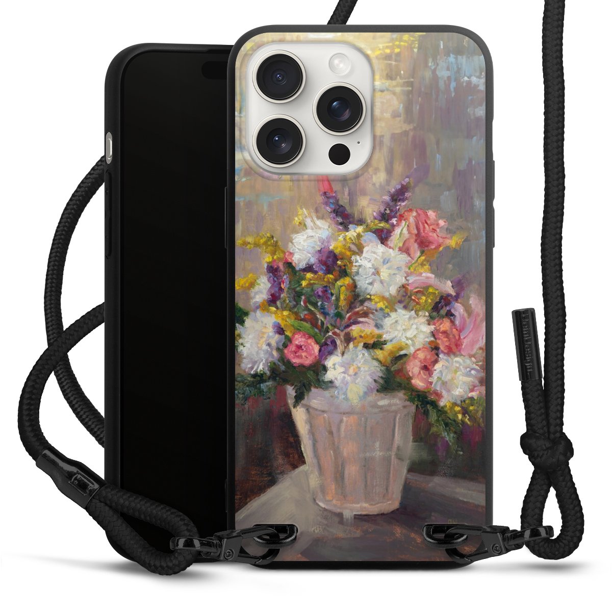 The matt black silicone case is made of flexible TPU (thermoplastic polyurethane) and offers robust protection. The durable, unbreakable material makes the cover flexible and dimensionally stable at the same time. The matte surface makes your design stand out more and is less susceptible to fingerprints and dirt. The stylish trend accessory fits comfortably in the hand and is perfectly complemented by the fabric (polyester) mobile phone strap. The braided fabric strap is approx. 1.70 metres long with a diameter of approx. 0.5 cm. Due to the special knotting technique, the length of the strap can be adjusted by simply pulling it, so that you can adapt it individually to your wishes. The practical case to wear around your neck is available with the fabric strap in black. As a little icing on the cake, we have provided the strap with a chic metal fastener in matt black. The strap is securely fastened to the case with loops made of high-quality genuine leather and press studs. The ends of the fabric strap are covered with metallic end caps and thus protected from fraying.