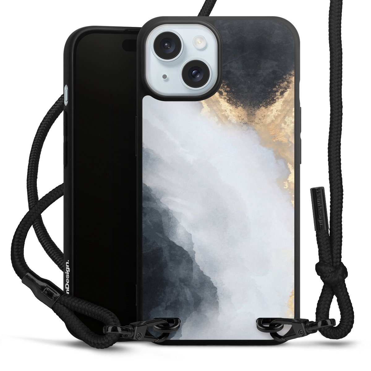 Pure Black: Phone case, fabric strap and metal details in stylish matt black.
