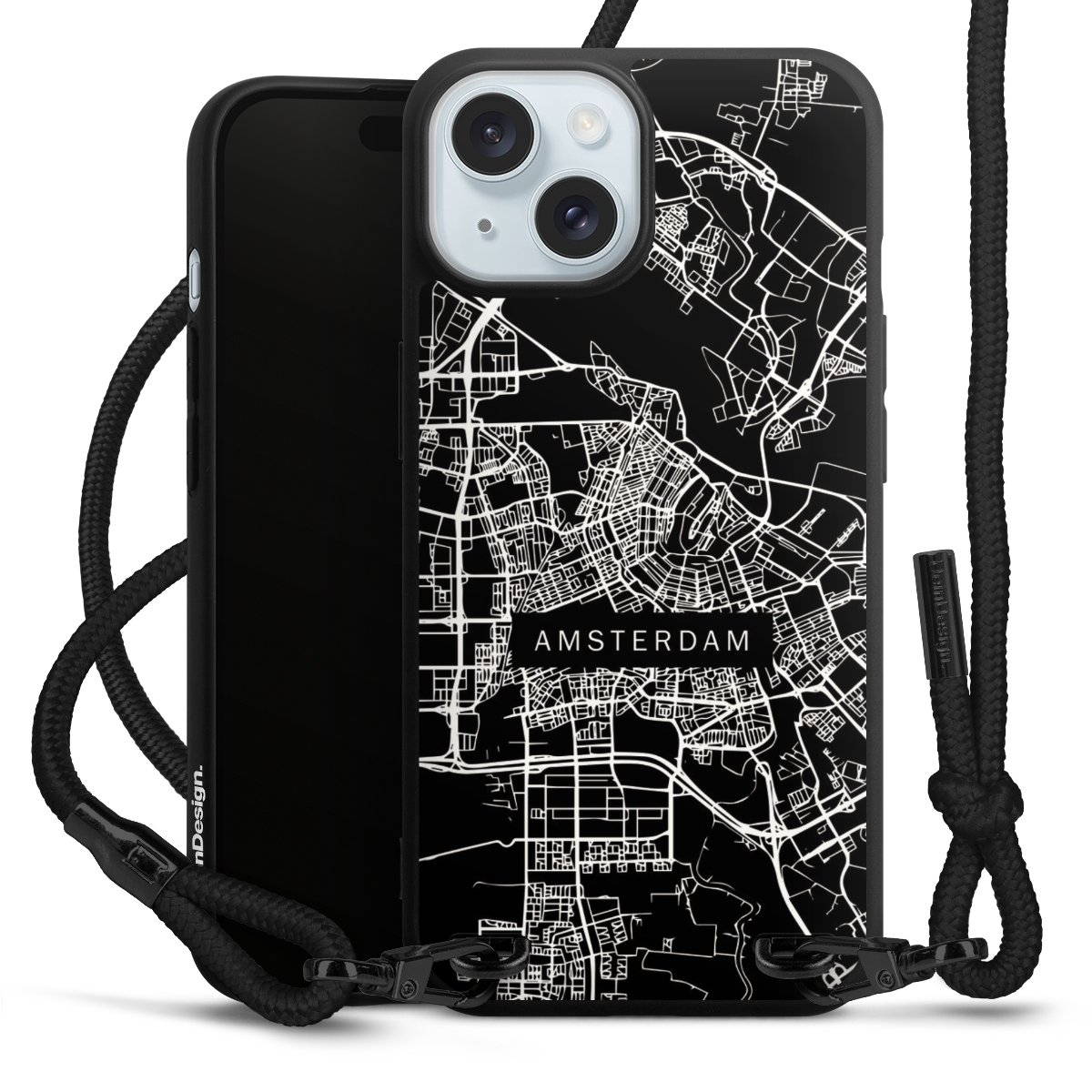 Pure Black: Phone case, fabric strap and metal details in stylish matt black.