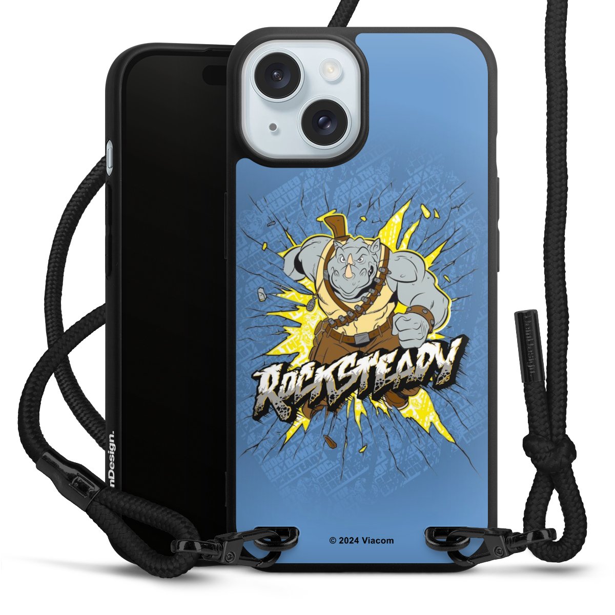 Pure Black: Phone case, fabric strap and metal details in stylish matt black.