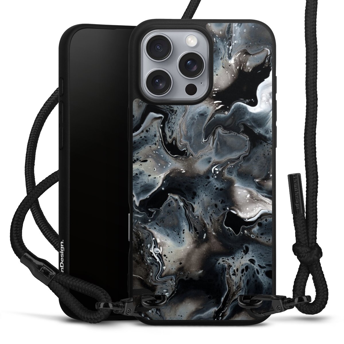 Pure Black: Phone case, fabric strap and metal details in stylish matt black.