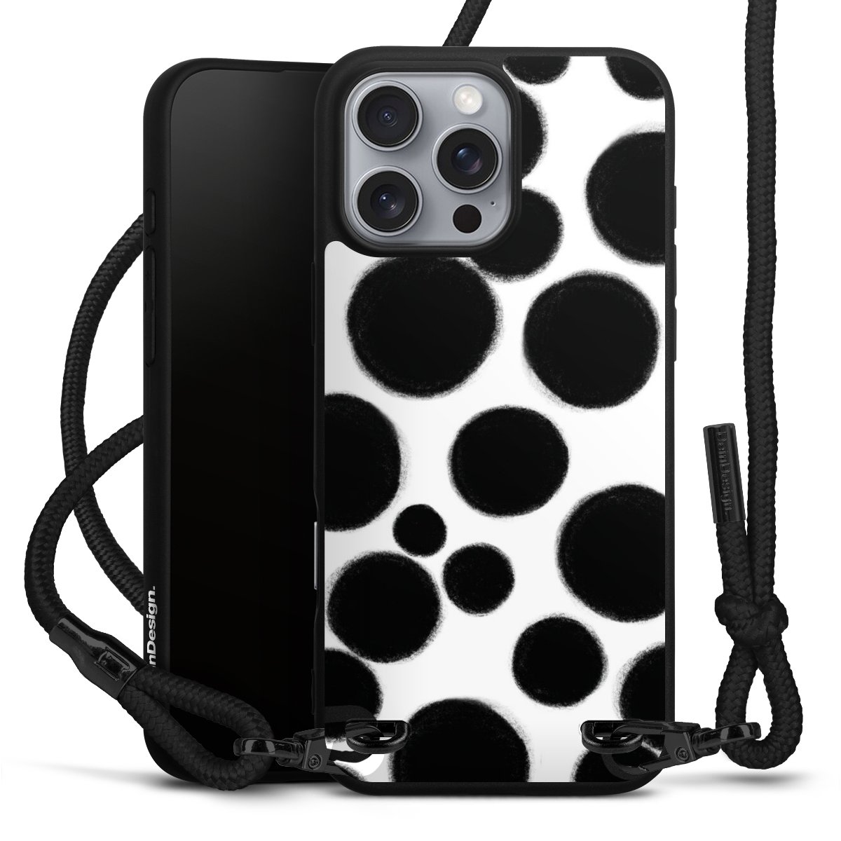 The matt black silicone case is made of flexible TPU (thermoplastic polyurethane) and offers robust protection. The durable, unbreakable material makes the cover flexible and dimensionally stable at the same time. The matte surface makes your design stand out more and is less susceptible to fingerprints and dirt. The stylish trend accessory fits comfortably in the hand and is perfectly complemented by the fabric (polyester) mobile phone strap. The braided fabric strap is approx. 1.70 metres long with a diameter of approx. 0.5 cm. Due to the special knotting technique, the length of the strap can be adjusted by simply pulling it, so that you can adapt it individually to your wishes. The practical case to wear around your neck is available with the fabric strap in black. As a little icing on the cake, we have provided the strap with a chic metal fastener in matt black. The strap is securely fastened to the case with loops made of high-quality genuine leather and press studs. The ends of the fabric strap are covered with metallic end caps and thus protected from fraying.