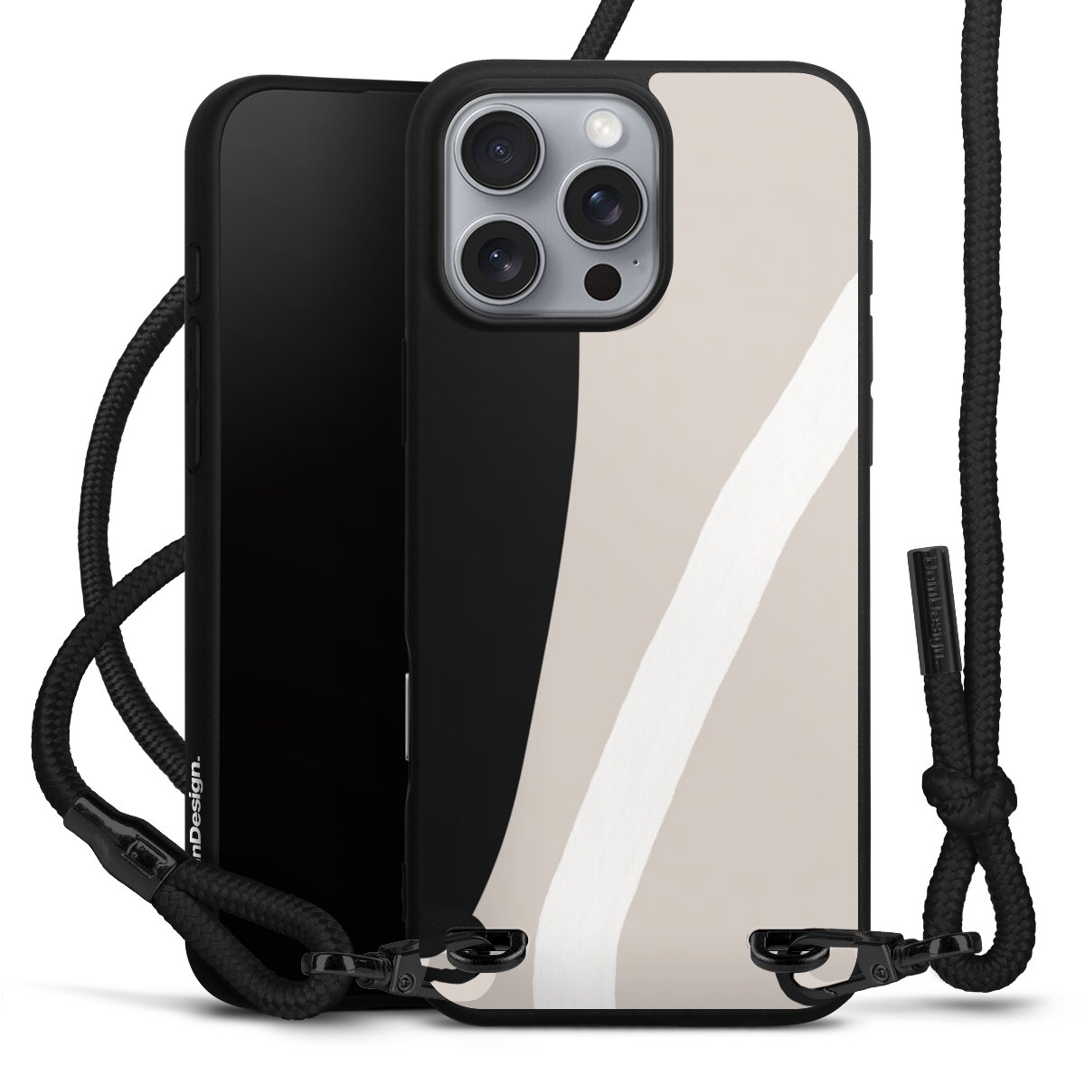 Pure Black: Phone case, fabric strap and metal details in stylish matt black.