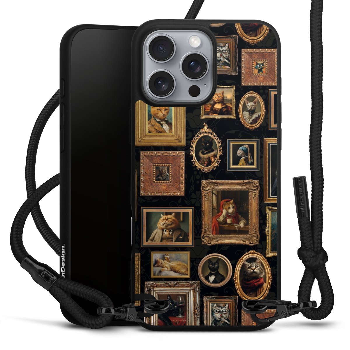 Pure Black: Phone case, fabric strap and metal details in stylish matt black.