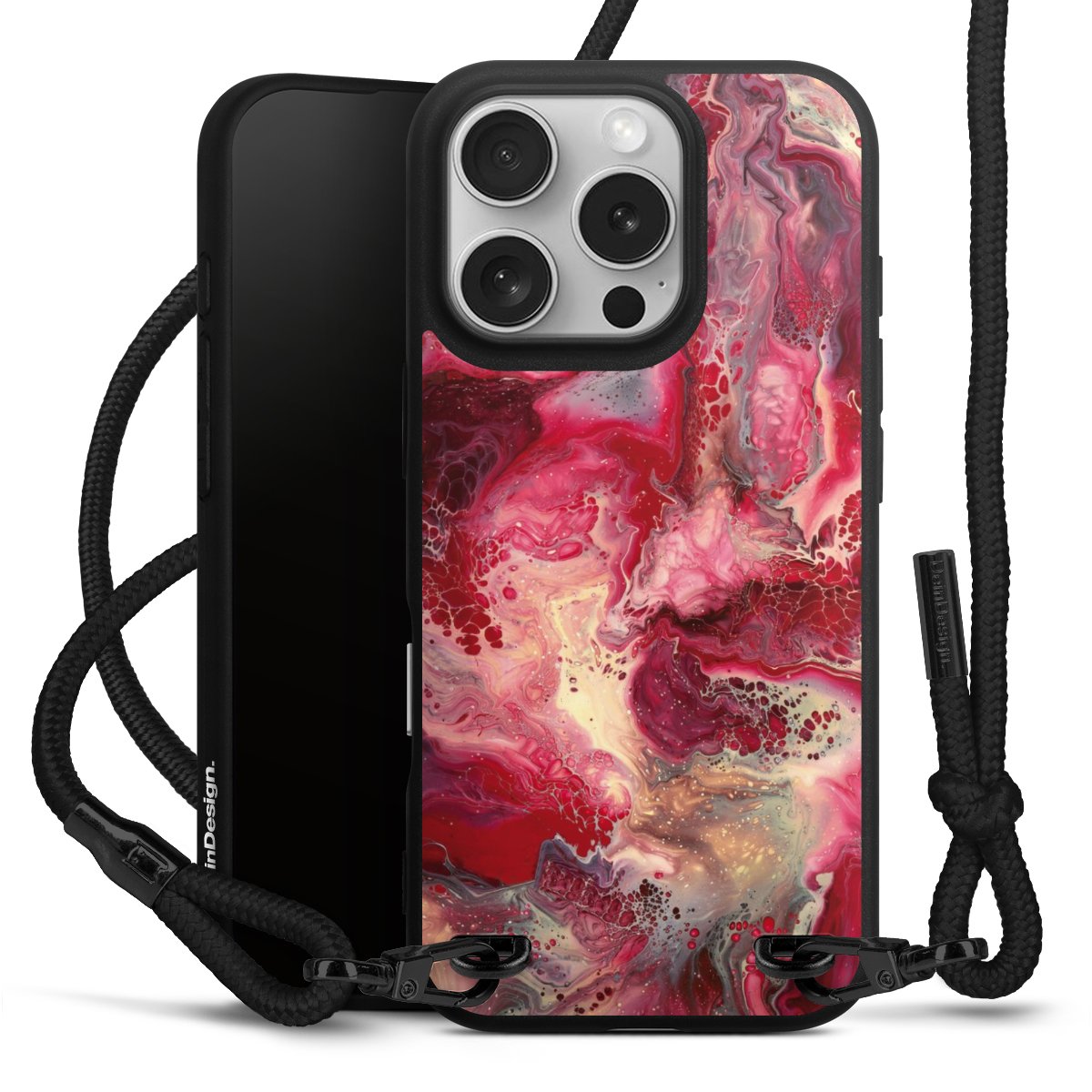 We use the solid direct print process for this phone case, which is why the print area only covers the back and the edge remains unprinted. The case to wear around your neck can be ordered unprinted, fully printed, or partially printed. For your design, either choose one of our exclusive shop motifs or get creative and create your own design, for example with photos and overlays. Design your own personal trend accessory and make an individual statement on the streets!