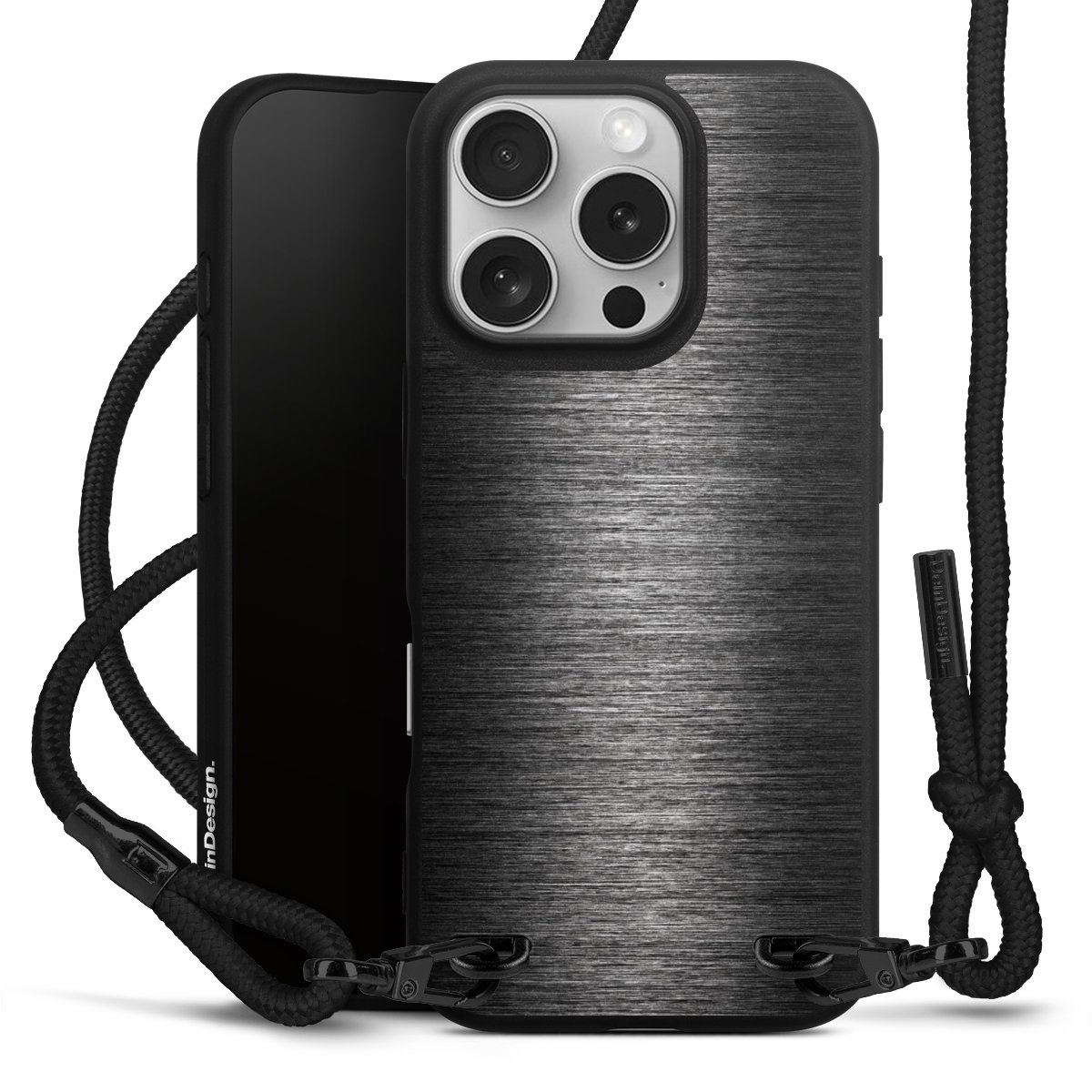Pure Black: Phone case, fabric strap and metal details in stylish matt black.