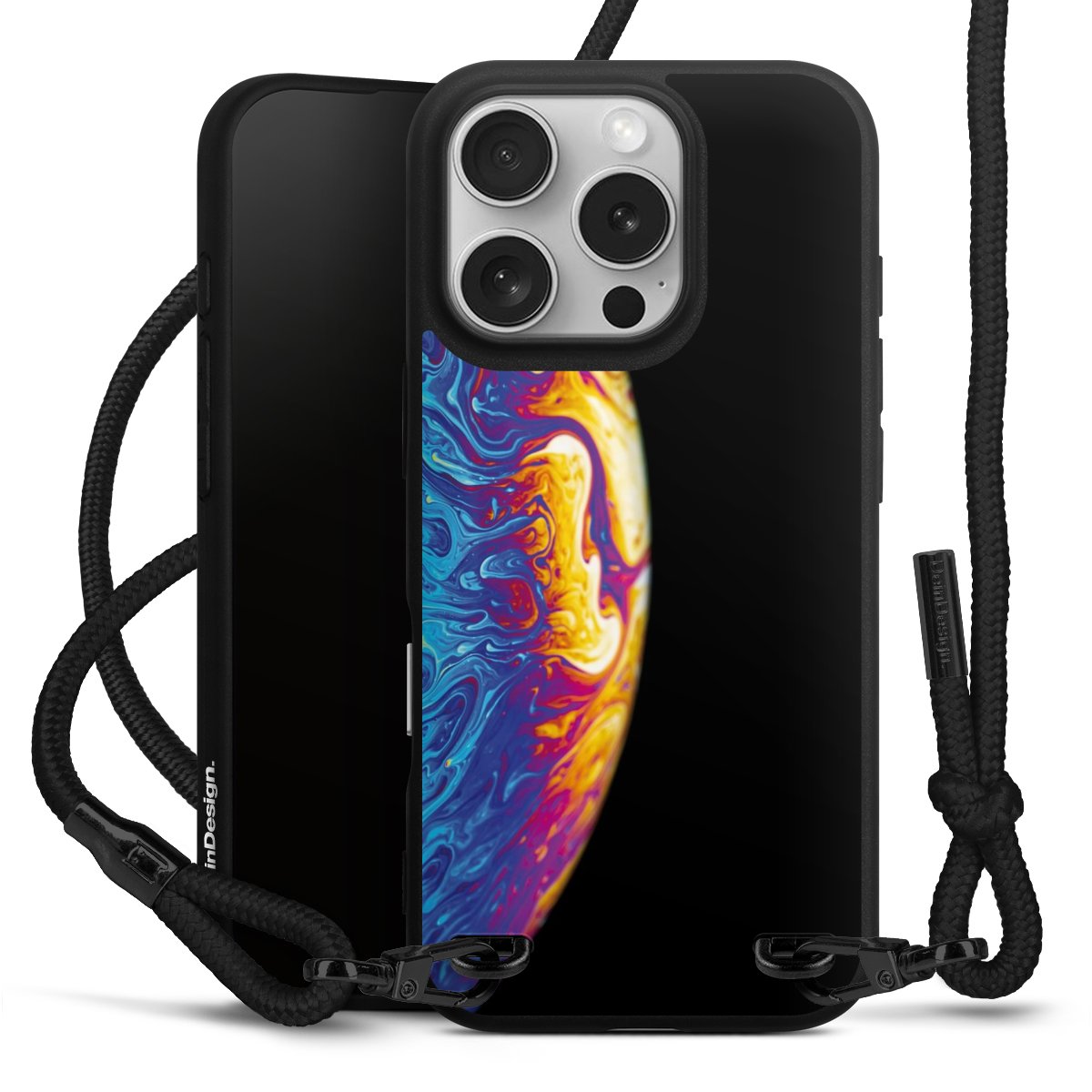 We use the solid direct print process for this phone case, which is why the print area only covers the back and the edge remains unprinted. The case to wear around your neck can be ordered unprinted, fully printed, or partially printed. For your design, either choose one of our exclusive shop motifs or get creative and create your own design, for example with photos and overlays. Design your own personal trend accessory and make an individual statement on the streets!