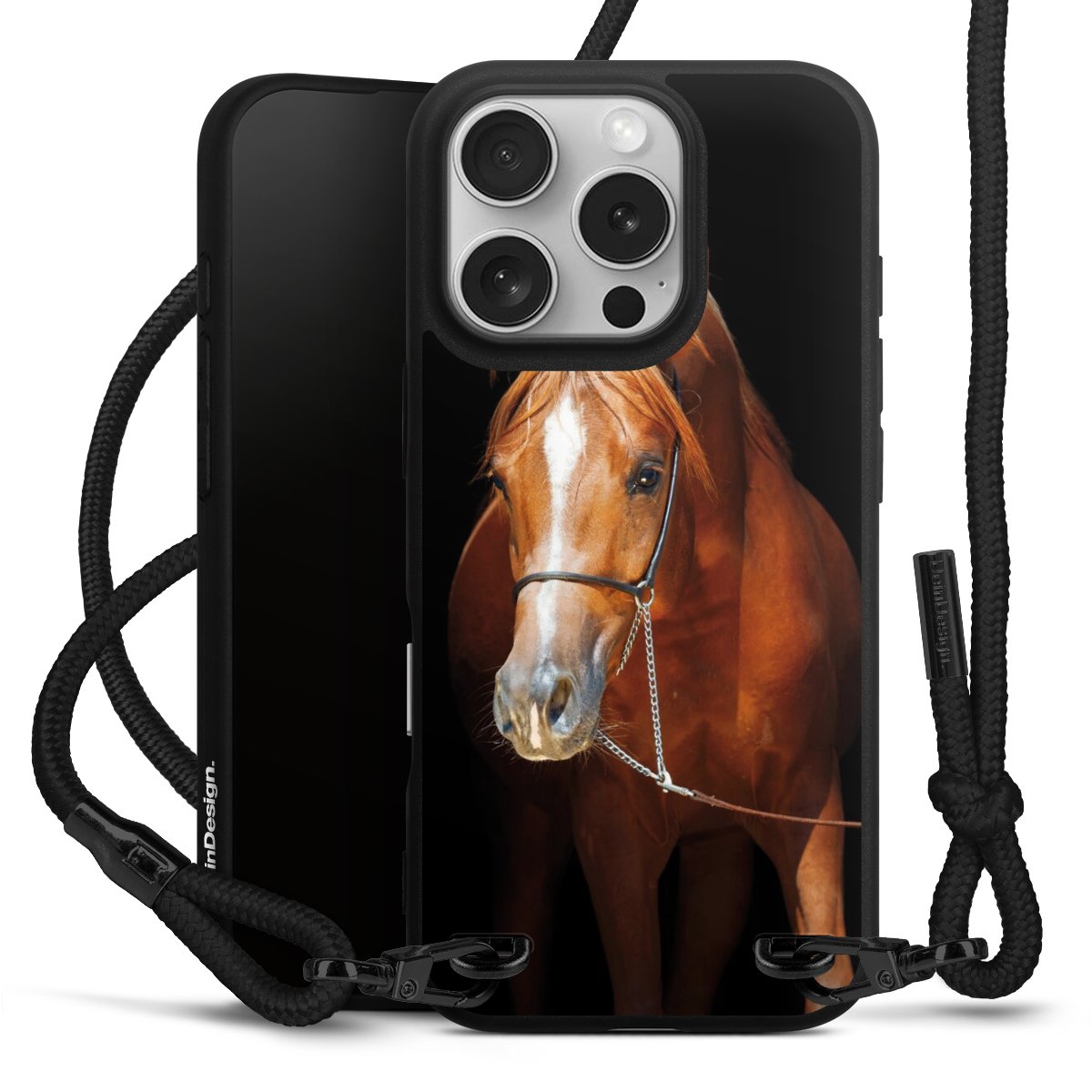 Pure Black: Phone case, fabric strap and metal details in stylish matt black.