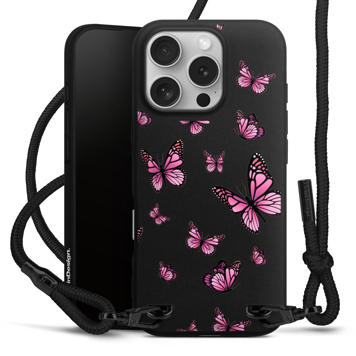 Pure Black: Phone case, fabric strap and metal details in stylish matt black.