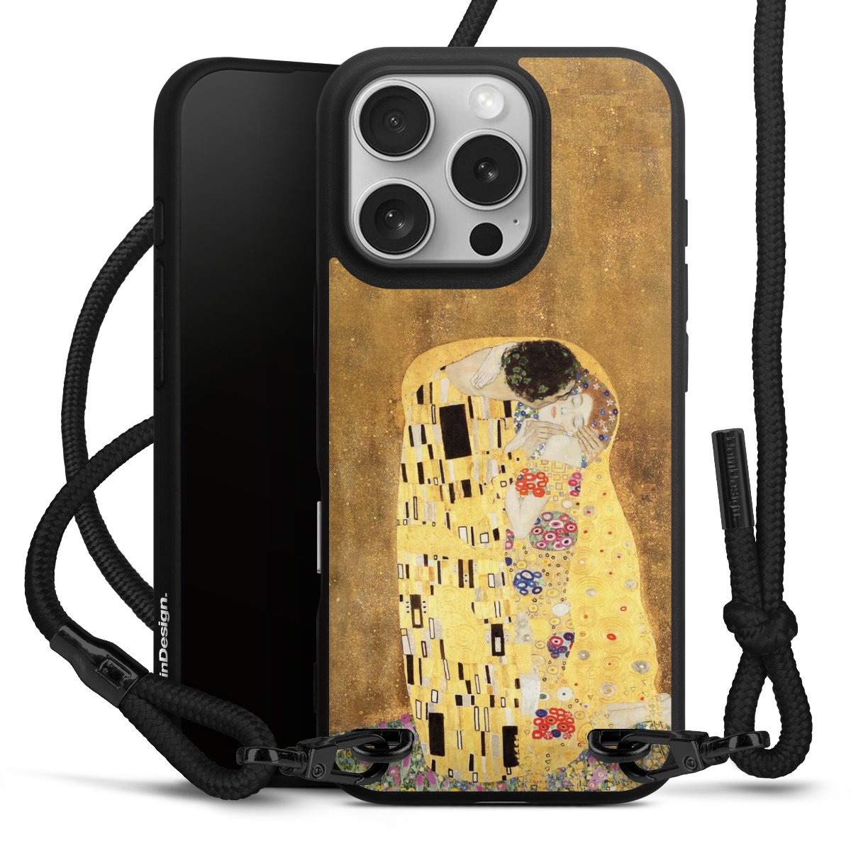 Pure Black: Phone case, fabric strap and metal details in stylish matt black.