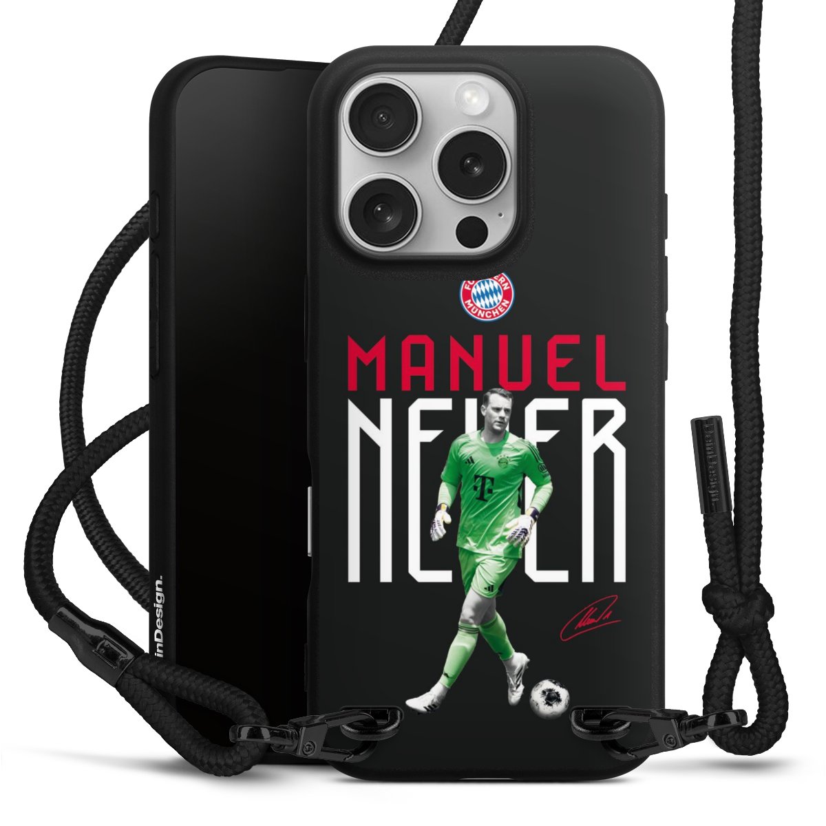 Pure Black: Phone case, fabric strap and metal details in stylish matt black.
