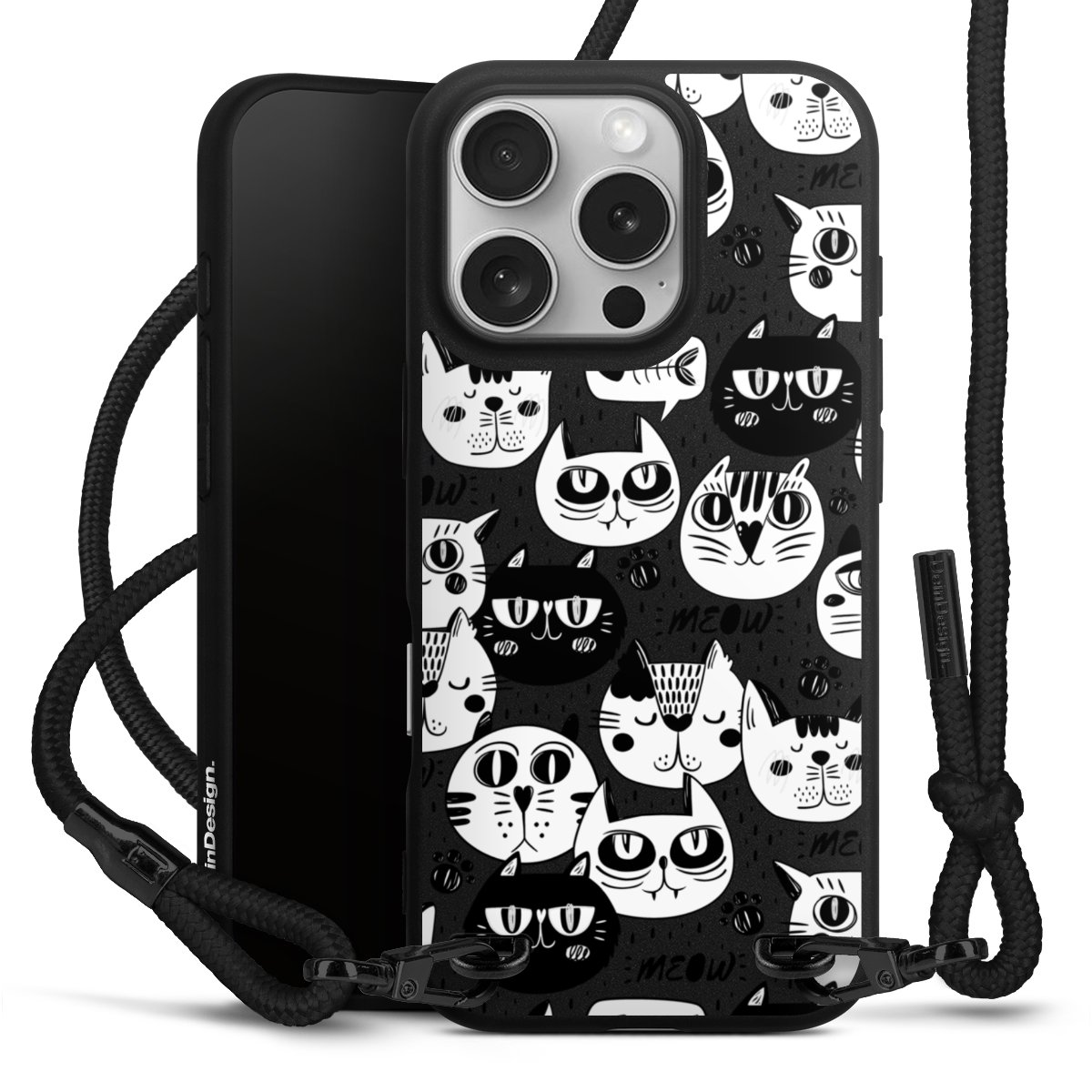 Pure Black: Phone case, fabric strap and metal details in stylish matt black.