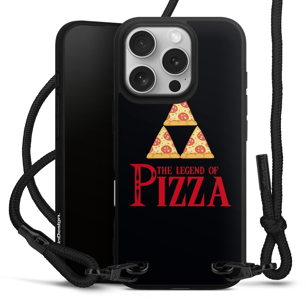Pure Black: Phone case, fabric strap and metal details in stylish matt black.