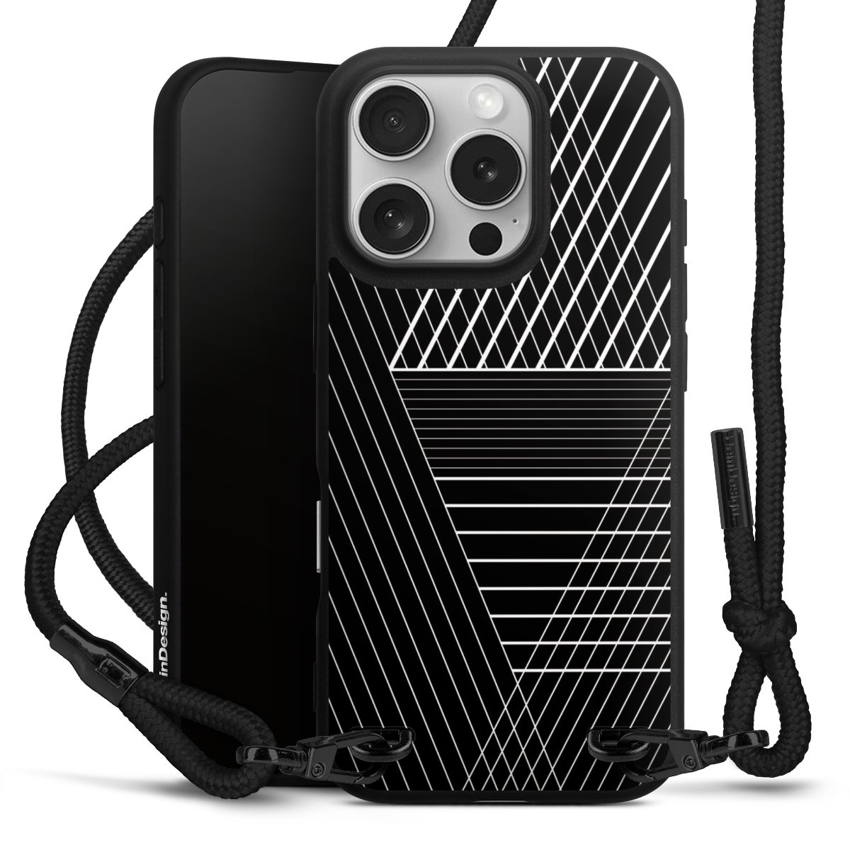 Pure Black: Phone case, fabric strap and metal details in stylish matt black.