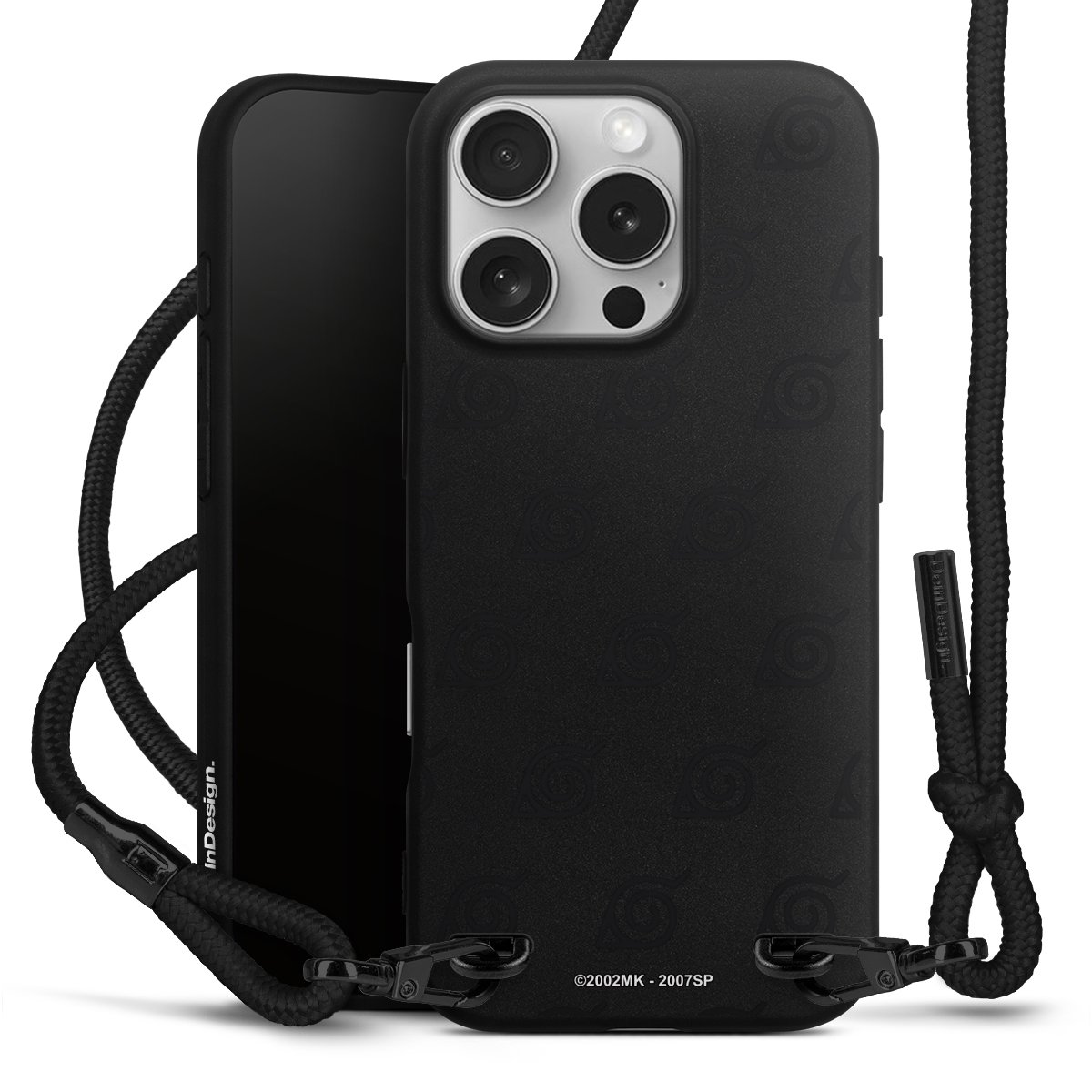 Pure Black: Phone case, fabric strap and metal details in stylish matt black.