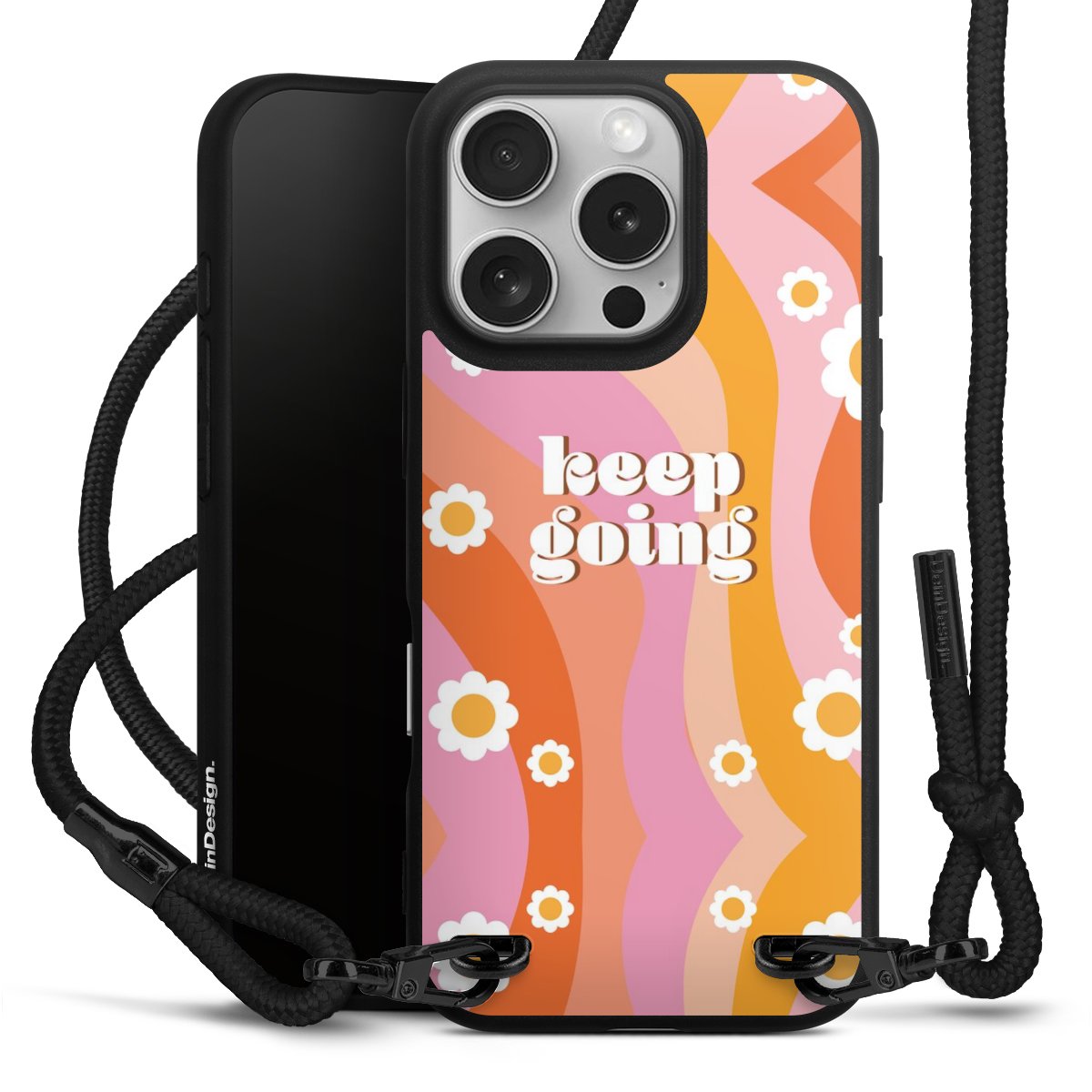We use the solid direct print process for this phone case, which is why the print area only covers the back and the edge remains unprinted. The case to wear around your neck can be ordered unprinted, fully printed, or partially printed. For your design, either choose one of our exclusive shop motifs or get creative and create your own design, for example with photos and overlays. Design your own personal trend accessory and make an individual statement on the streets!