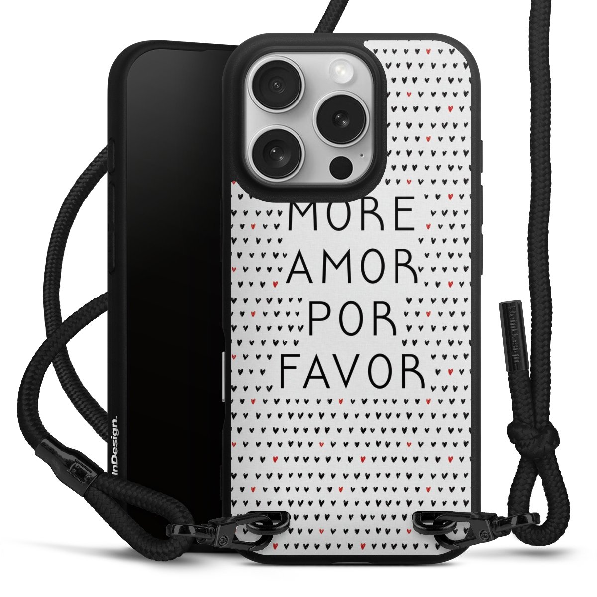 Pure Black: Phone case, fabric strap and metal details in stylish matt black.