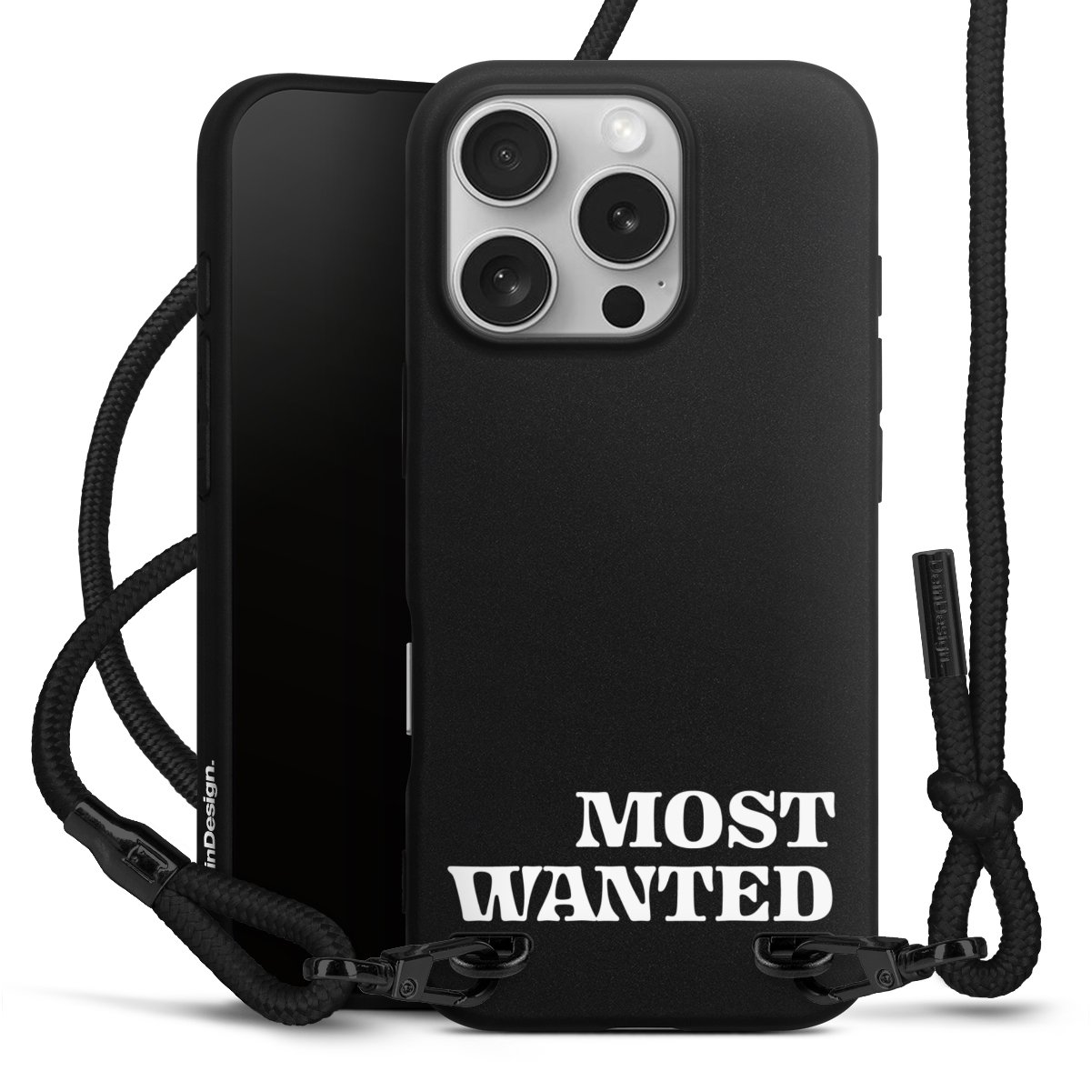 Pure Black: Phone case, fabric strap and metal details in stylish matt black.