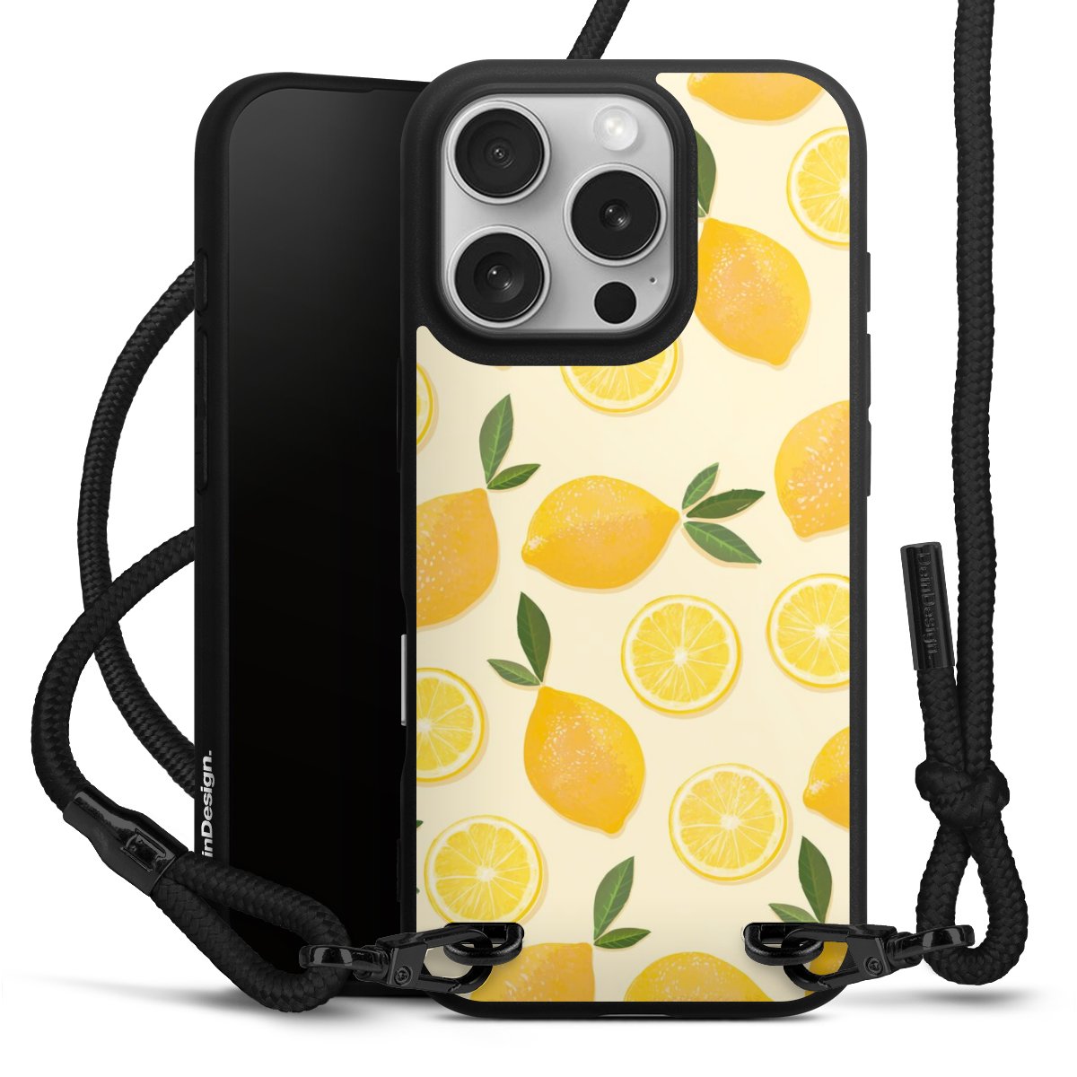 Pure Black: Phone case, fabric strap and metal details in stylish matt black.